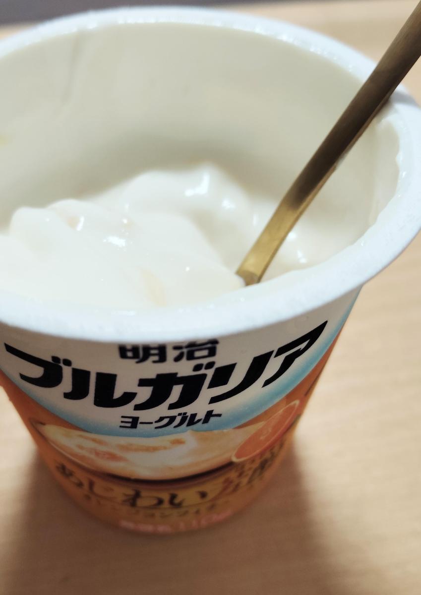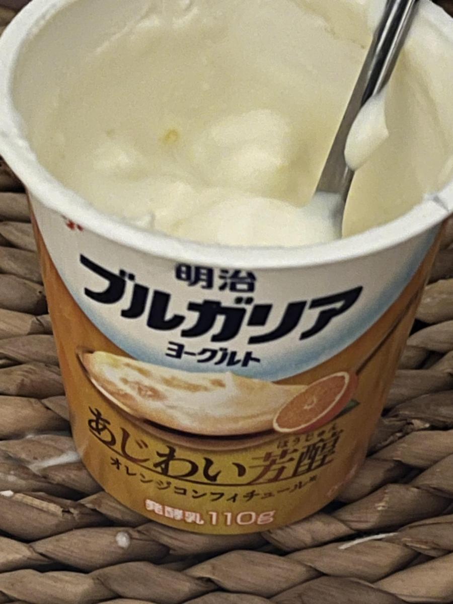 オレンジの粒ではなく、大きめの果肉が入っていて満足感があります。ヨーグルト自体にはあまりオレンジ味はついてません。なのでヨーグルト自体の美味しさがよく味わえます。