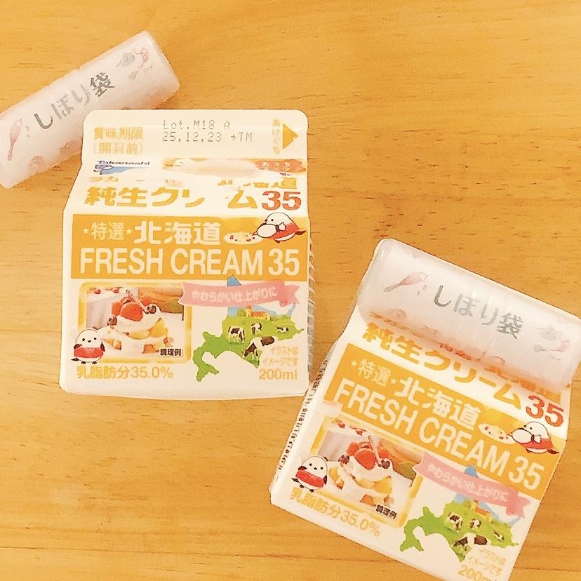 タカナシの生クリームのシリーズは、北海道産のクリームで品質が高いです。 生乳の味わいがとても美味しくて、砂糖を入れて泡立たら、ミルキーな味♡ まるで練乳を入れたみたいな美味しさになるので、気に入ってます。 お値段も高いのですが、それ相応の価値があると思います♫ ただ、乳脂肪35%のこちらは、ハンドミキサーでしっかり泡立てても、とろとろのクリーム状にしかならないので、デコレーションケーキには向いていませんでした。 ゆる〜いクリームなので、パンケーキにかけました。 砂糖はいれないクリームになりますが、ポタージュなどに入れたり、ビーフシチューなど洋食メニューの仕上げに使えばレストランみたいにお洒落になります。 もし、デコレーションケーキを作りたい場合は、同じシリーズの乳脂肪が高いものをおすすめします。42%、47%があり、しっかりした生クリームに泡立てることができました。特に47%は、素早く固めの生クリームになるので、様子を見ながら泡立てました。 乳脂肪35%は42.47%に比べたら、値段が安いので買いやすいのですが、デコレーション用にならないので、料理にそのまま使うのが向いてるクリームだと思ってます。