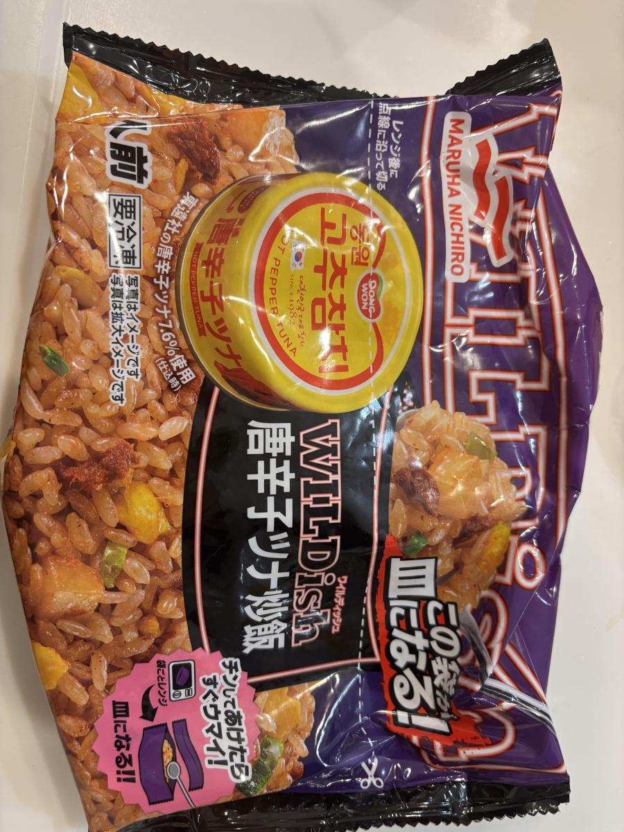 韓国の唐辛子ツナの缶詰を使ったチャーハンで、これまで食べたたことのない新鮮さがある。食べてみても、「唐辛子ツナ」そのまんまの味で、唐辛子のピリ辛さに具材としてのツナが味も食感もしっかりと存在感を主張しているのがわかる。さらに目新しいというか、韓国っぽさを感じるのがダイス状のじゃがいもで、チャーハンにじゃがいもというのはイメージがないので、「おおっ!」となる。じゃがいも自体も唐辛子のピリ辛、ツナとも相性が良くて、じゃがいもをもってくるとはなかなかやるな、と感心する。それに何より商品全体のカラーと言うか雰囲気がワイルディッシュシリーズらしさに溢れていて、そういう意味でも納得の商品だなと思った。
