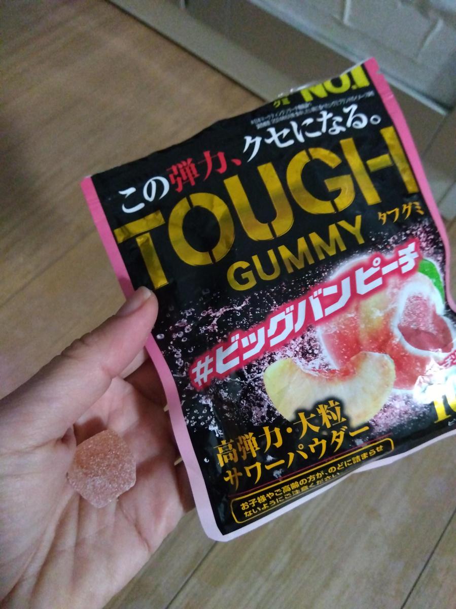 タフグミのビッグバンピーチ味です。大粒で高弾力のグミがやみつきになります。サワーパウダーがかかっていて、甘酸っぱくパンチが効いた味わいです。爽やかなピーチ味でとても美味しいです。