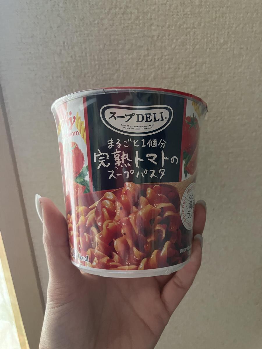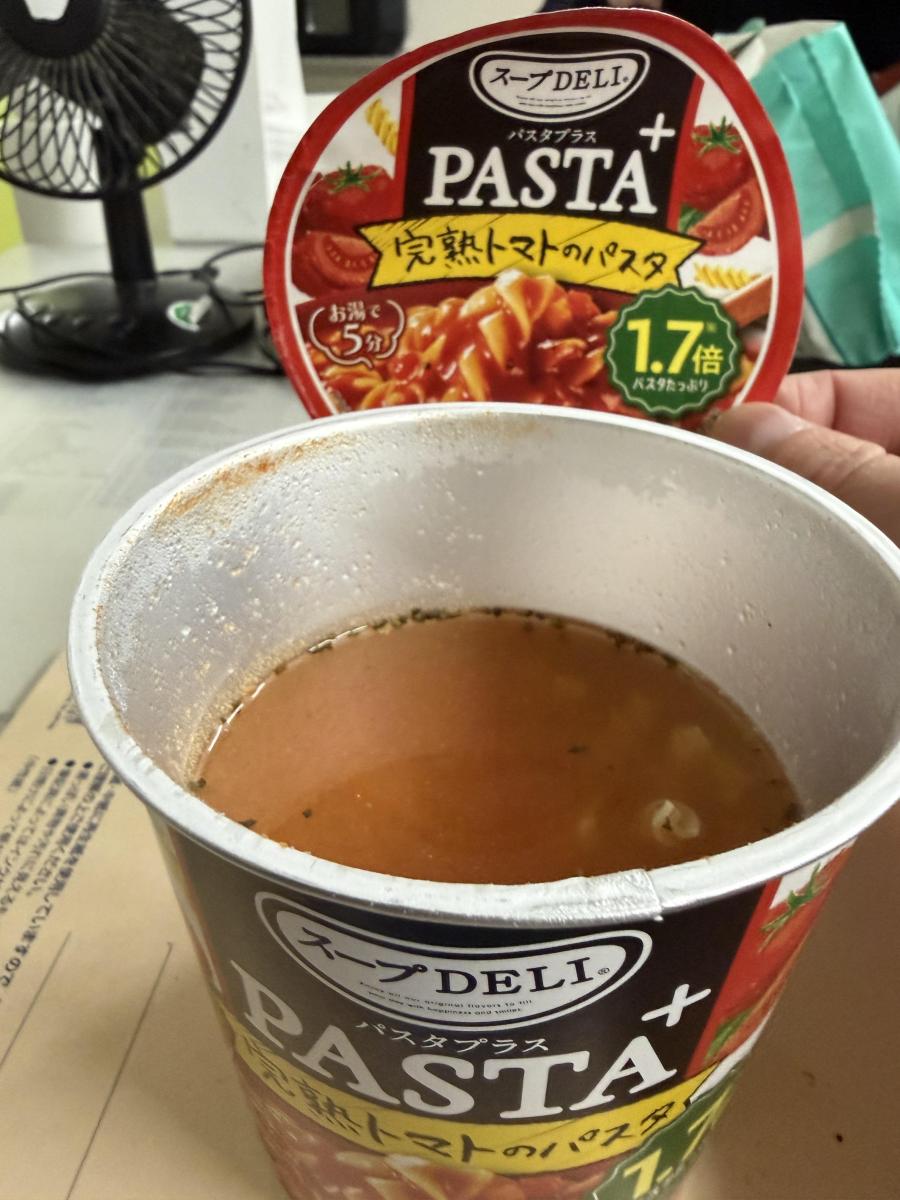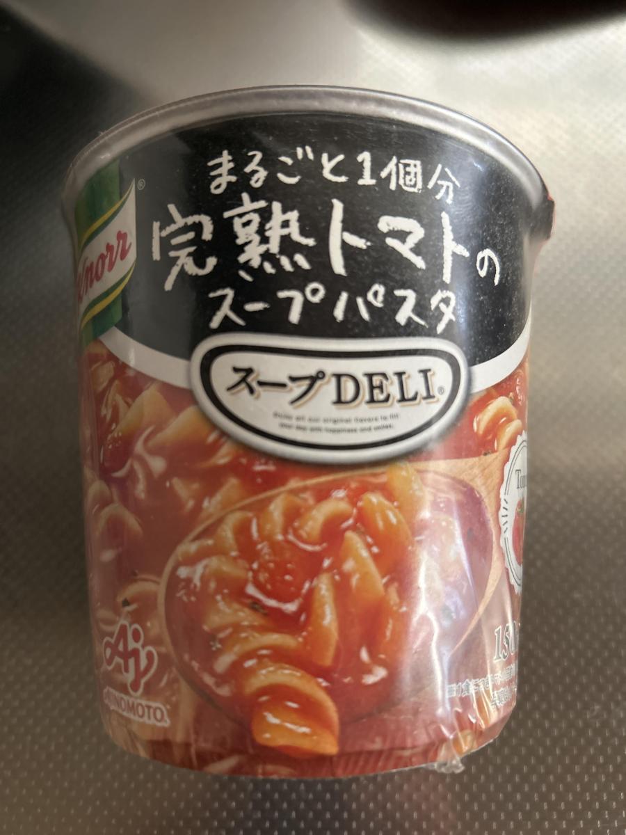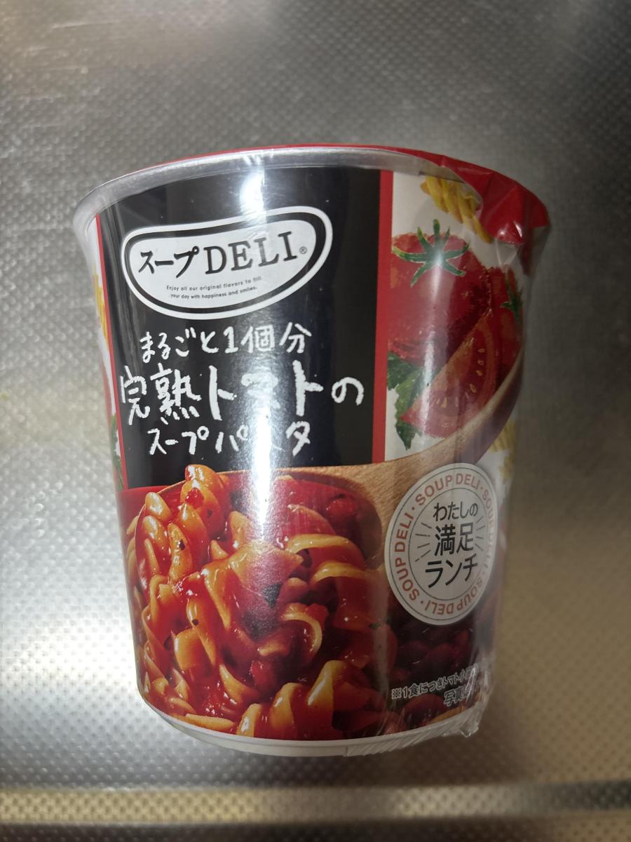 この商品はスープDELIという名前ですが、実際には完熟トマトのパスタとあるようにスープとパスタの中間程度の印象を持ちました。少なくともスープではないですね。酸味のあるトマトソースがたっぷりのパスタに絡みますので食べ応えがあります。トマトが好きな人向けの味かなと思いました。当然旨味もかなりしっかり感じられます。美味しかったです。しっかりかき混ぜて食べましょう。