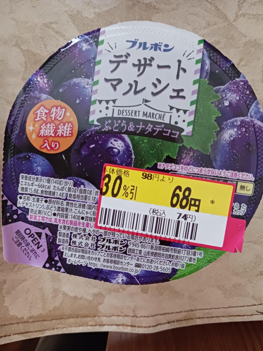 お店で安くなっていたので買ってきました。果実入りのゼリーで、ナタデココも入っているのがとても贅沢でおいしかったです。食物繊維入りなのもうれしいです。