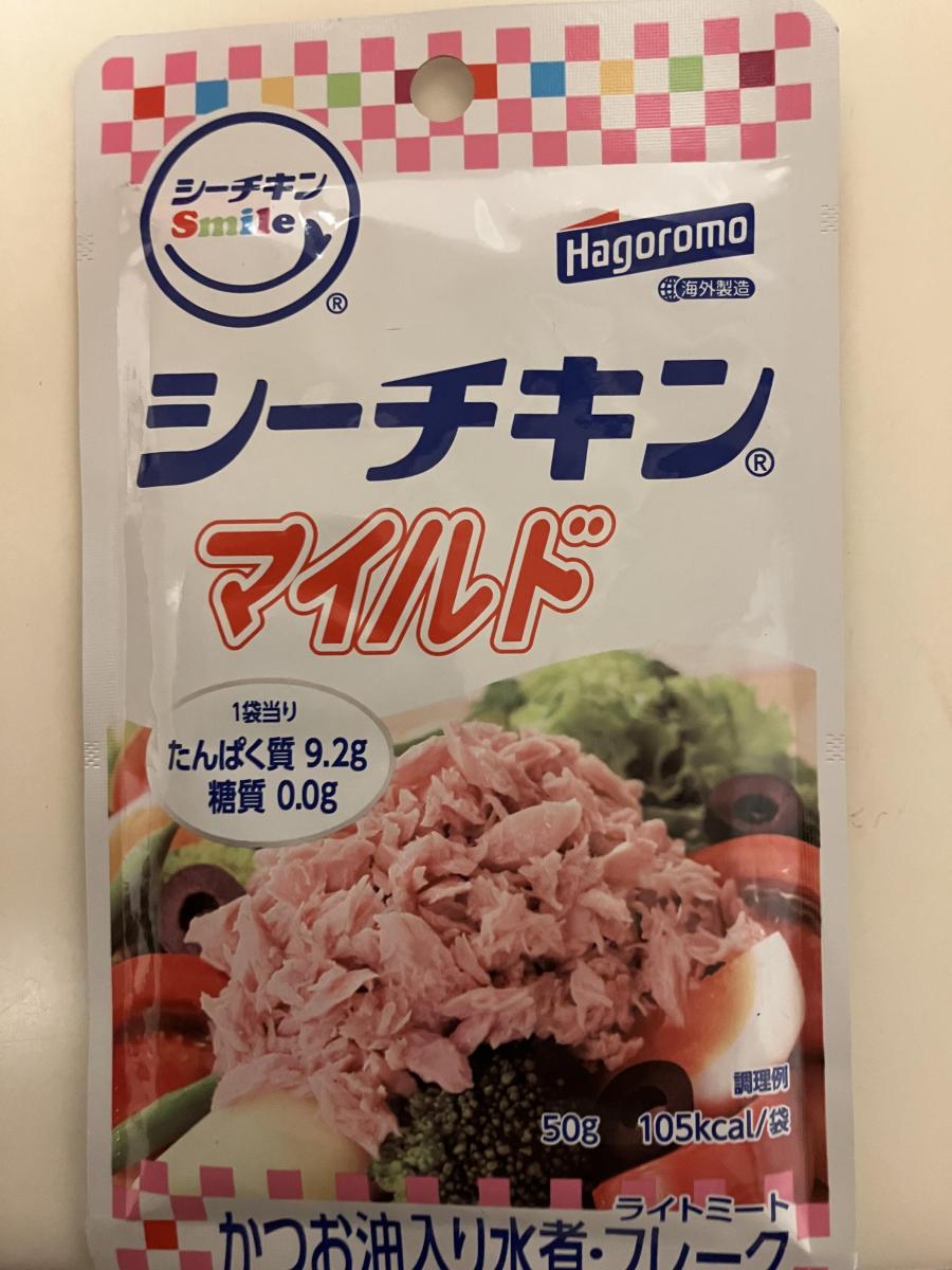 シーチキンマイルドはかつおが原料。マグロを使用したツナとは違いしっかりとした食感で食べ応えがあります。
