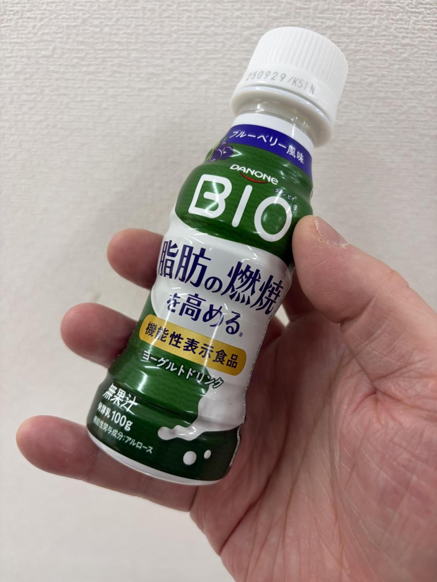 脂肪の燃焼を高めるという機能性表示食品のヨーグルトドリンクです。ボトルの形も、どこか格好いいです。