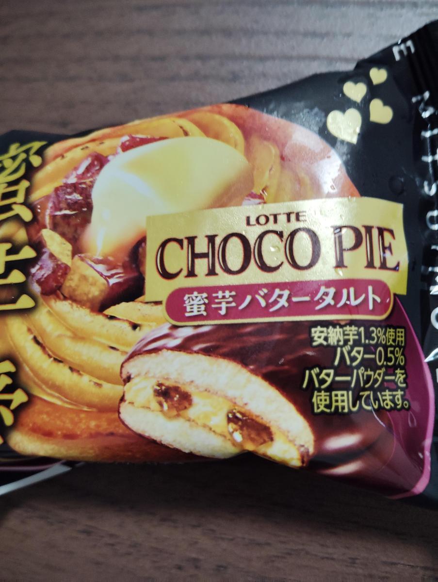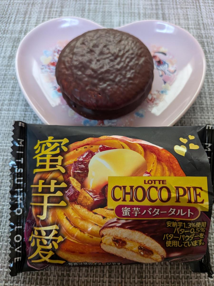 おなじみの甘いチョコパイに、バター風味とさつまいも風味がプラスされていました。中のクリームにバター風味が感じられ、さつまいも風味もしっかり感じられましたが、でもあくまでもチョコパイ要素強め。せっかくの蜜芋バタータルト味なので、もう少しチョコパイ要素を弱めていただいた方が良かったのではないかなと思いました。甘さも風味も、チョコが一番強かったです。甘さは強めなので、小ぶりですが1つ食べるとかなりの満足感でした。