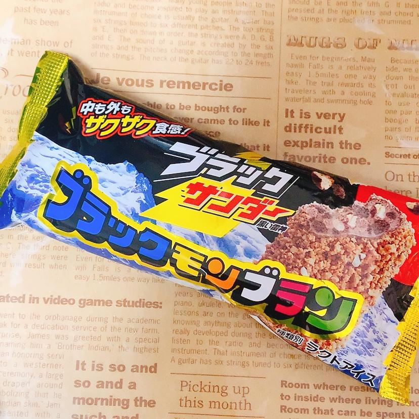 ブラックモンブランもブラックサンダーも大好きで気になり購入してみました。パッケージからして目が惹きます。チョコレートアイスをブラックモンブランのいつものつぶつぶでコーティングされています。チョコレートアイスの中にはブラックサンダーを思わせるザクザクッとした食感が楽しめ、チョコレートも甘さ控えめで大変美味しかったです。定番化してほしいです。