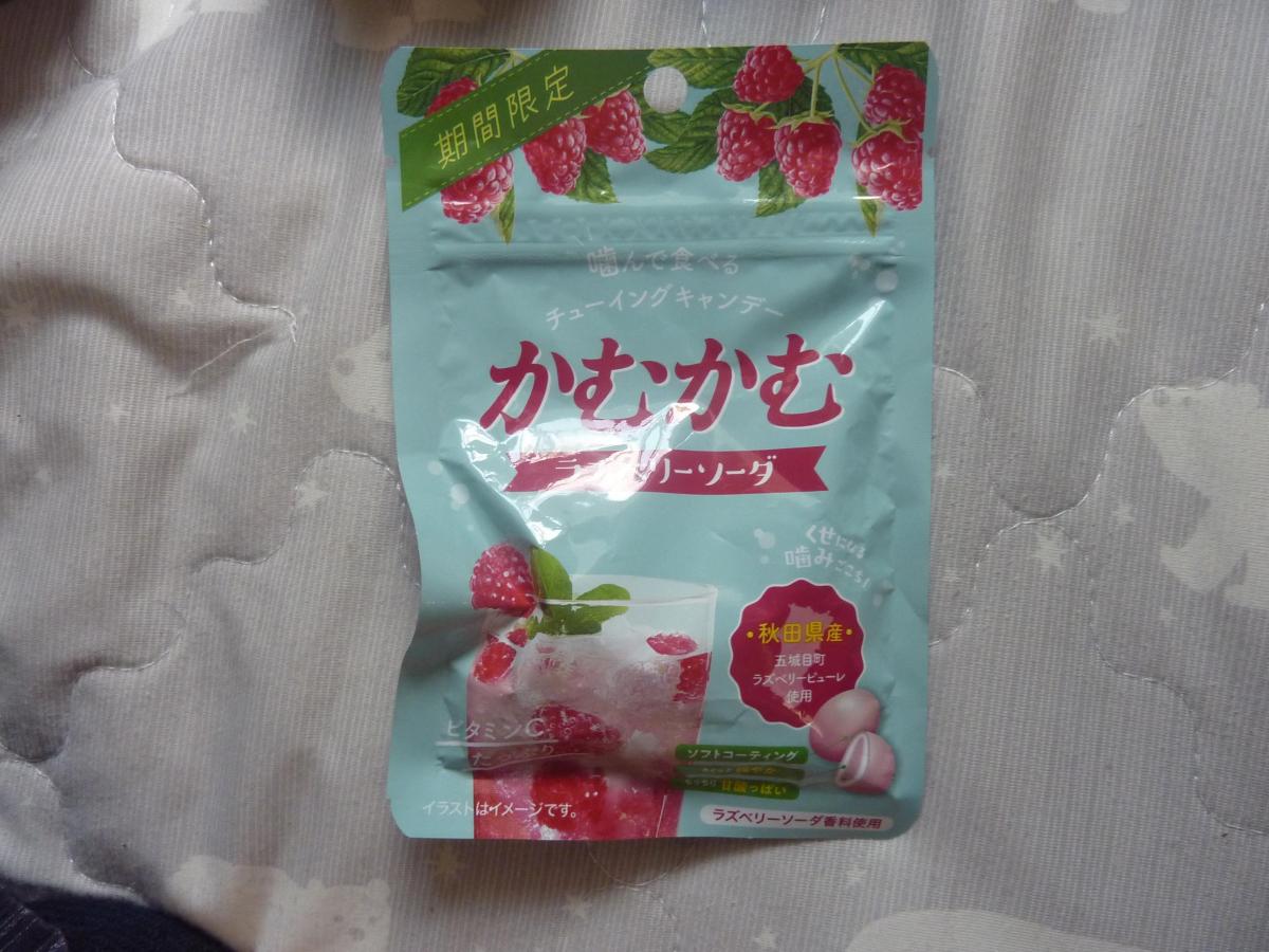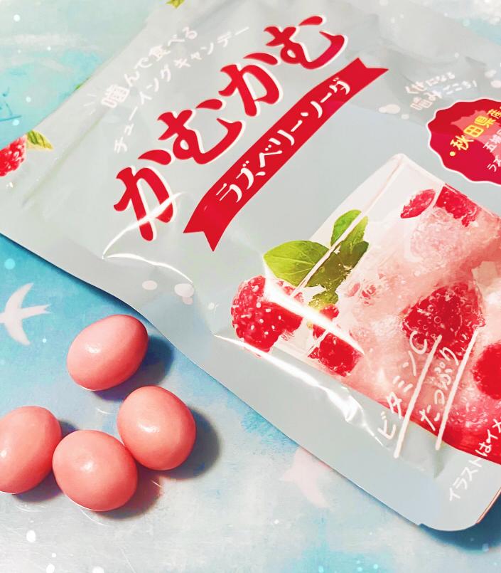 かむかむシリーズが大好きで今回新しいラズベリーソーダ味が出ていたので気になり購入してみました。パッケージもかわいらしいです。約1%の国産ラズベリーのうちの1つである秋田県五城目町産 国産ラズベリーを使用しているようで、袋開けた時からラズベリーのいい香りがしました。食べると弾力のある食感で爽やかな酸味と甘みが感じ大変美味しかったです。ソーダーはあまり感じなかったですが、美味しかったです。