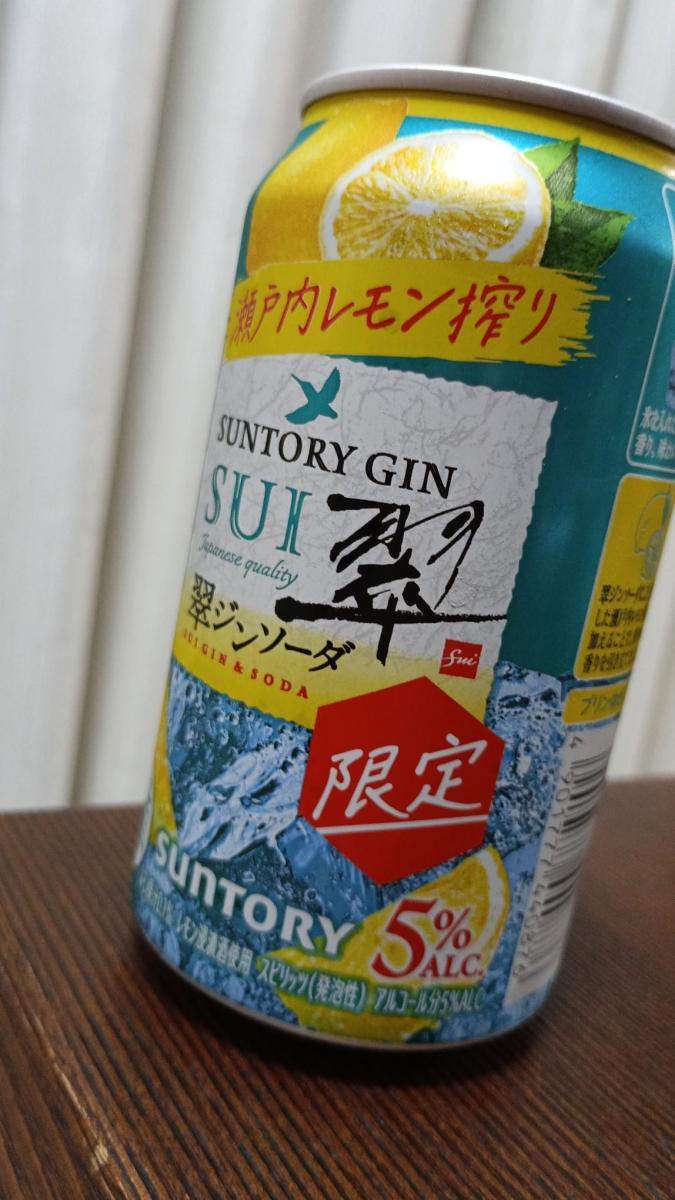 翠ジンソーダ、限定があったので早速購入しました。レモンのサッパリ感があるのかな??いつもの翠ジンより爽やかな感じて飲めました。前に限定で柚子があったけど、柚子よりレモンのほうが好みでした。柚子の時も思ったけど、レモンの香りや酸味などが際立ってる訳でもなく、翠ジンの良さが際立っているのでもなく…。どっちつかずな感じが微妙です。