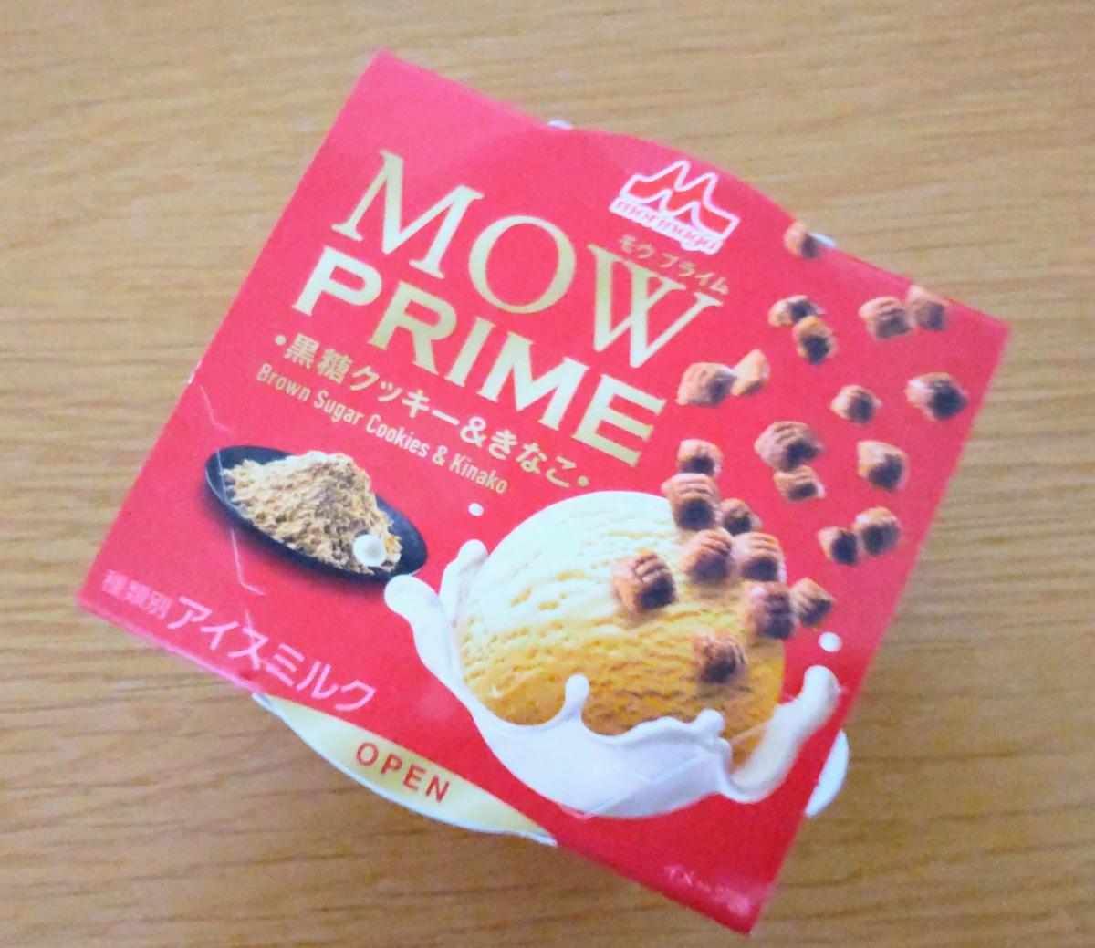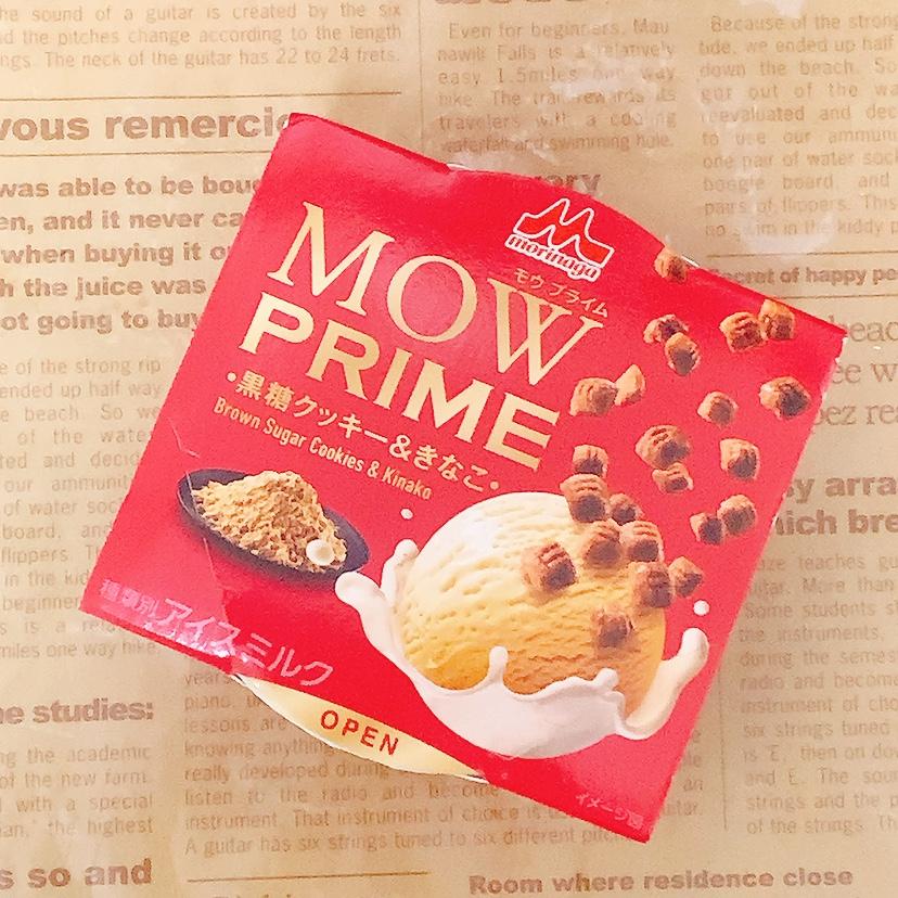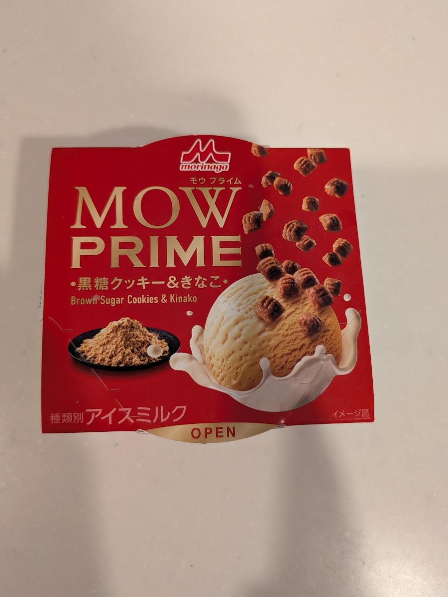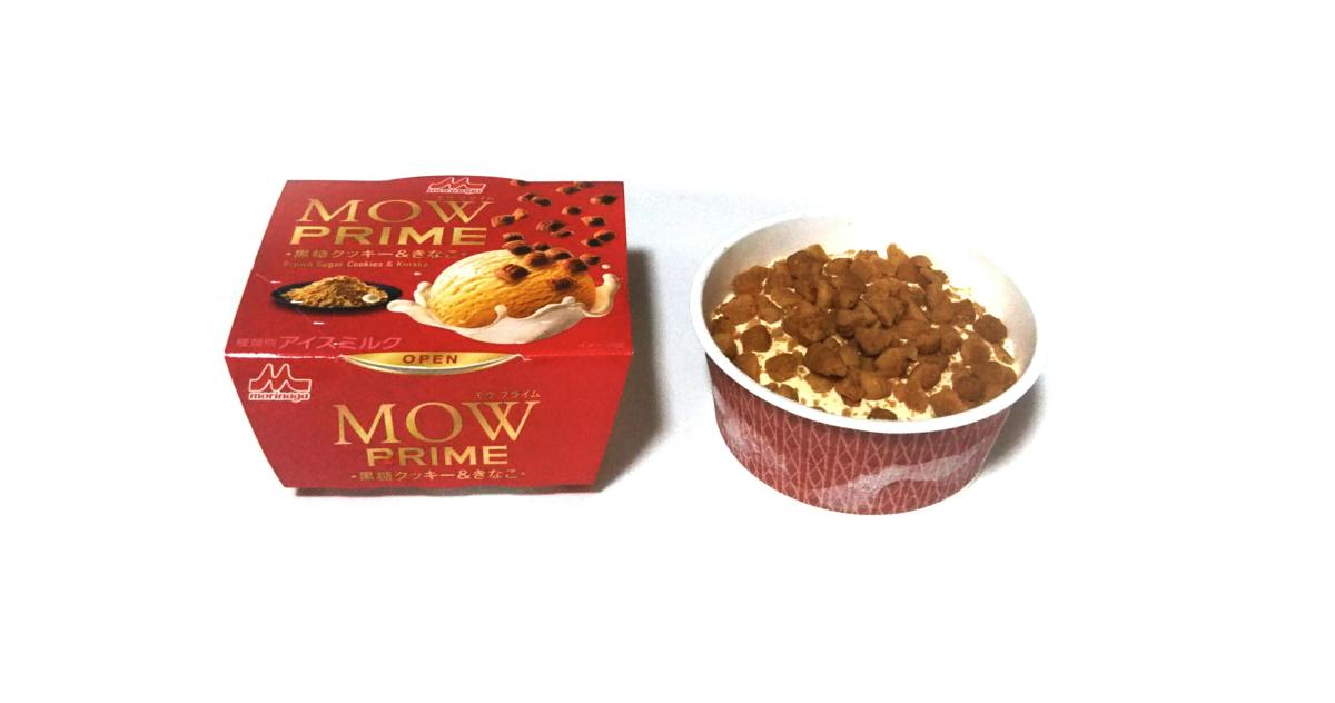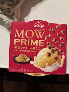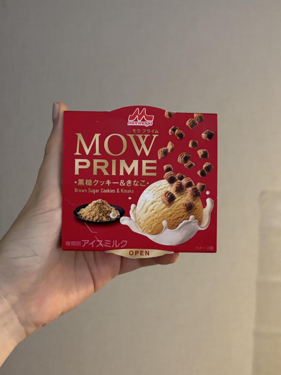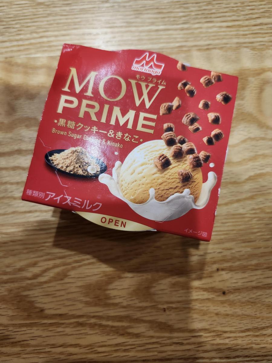 MOW PRIMEシリーズ大好きなので、新作黒糖クッキー&きなこを購入しました!フタを開けてみると、小さな黒糖クッキーのかけらで一面埋め尽くされています。クッキーとアイスを一緒に食べてみると、黒糖クッキーの香りの強さが勝ちます。でも、きなこアイスも風味がしっかりしています。黒糖大好きな人にぜひ食べて欲しいです!アイスとクッキー一緒に食べるととてもおいしいです。また食べたいです!