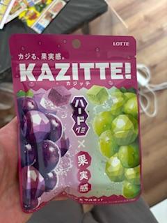 以前にこちらの違う味を食べて美味しかったので、マスカットも気になり購入してみました。噛み応えのあるハードな食感ですが、弾力があってジューシーでとても美味しいです。まわりのパウダーの甘酸っぱさもいい感じで、グレープとマスカットの2種類の味が楽しめて大変美味しかったです。柔らかめグミが好みですが、こちらはハードですが、美味しかったです。