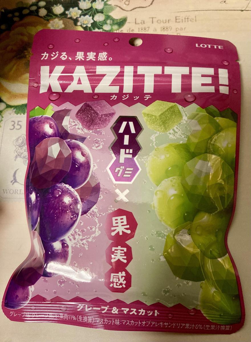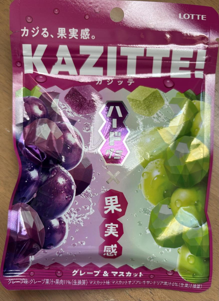 みかん&レモンのバージョンが美味しかったので、こちらも買ってみました。甘ずっぱくフルーティーな味わいで、グレープとマスカットの果汁感があります。ハードな食感でしっかりした噛みごたえもあります。