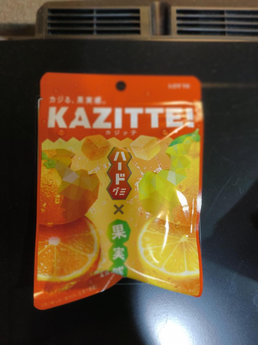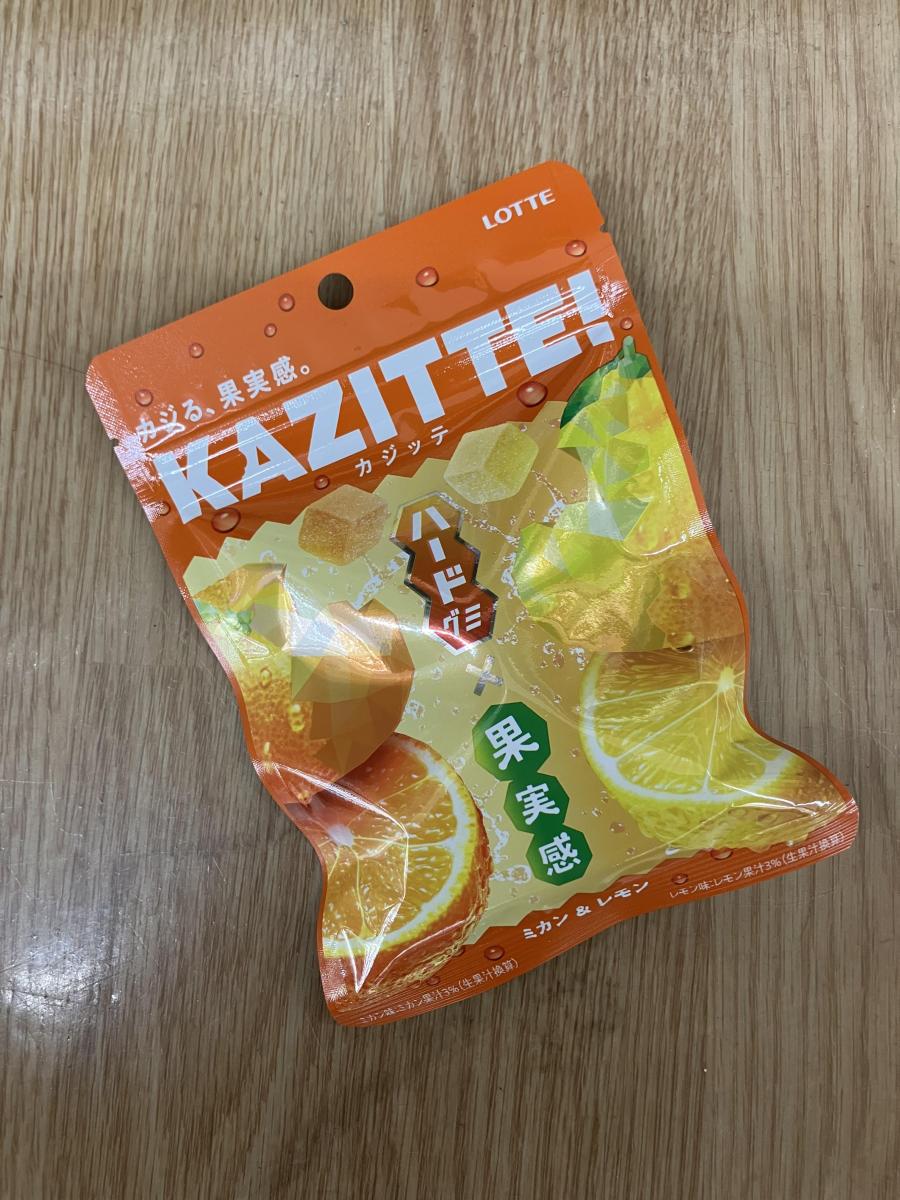 ハードタイプのカジッテというグミです。イエローとオレンジのビタミンカラーのパッケージで、元気になりそうです。