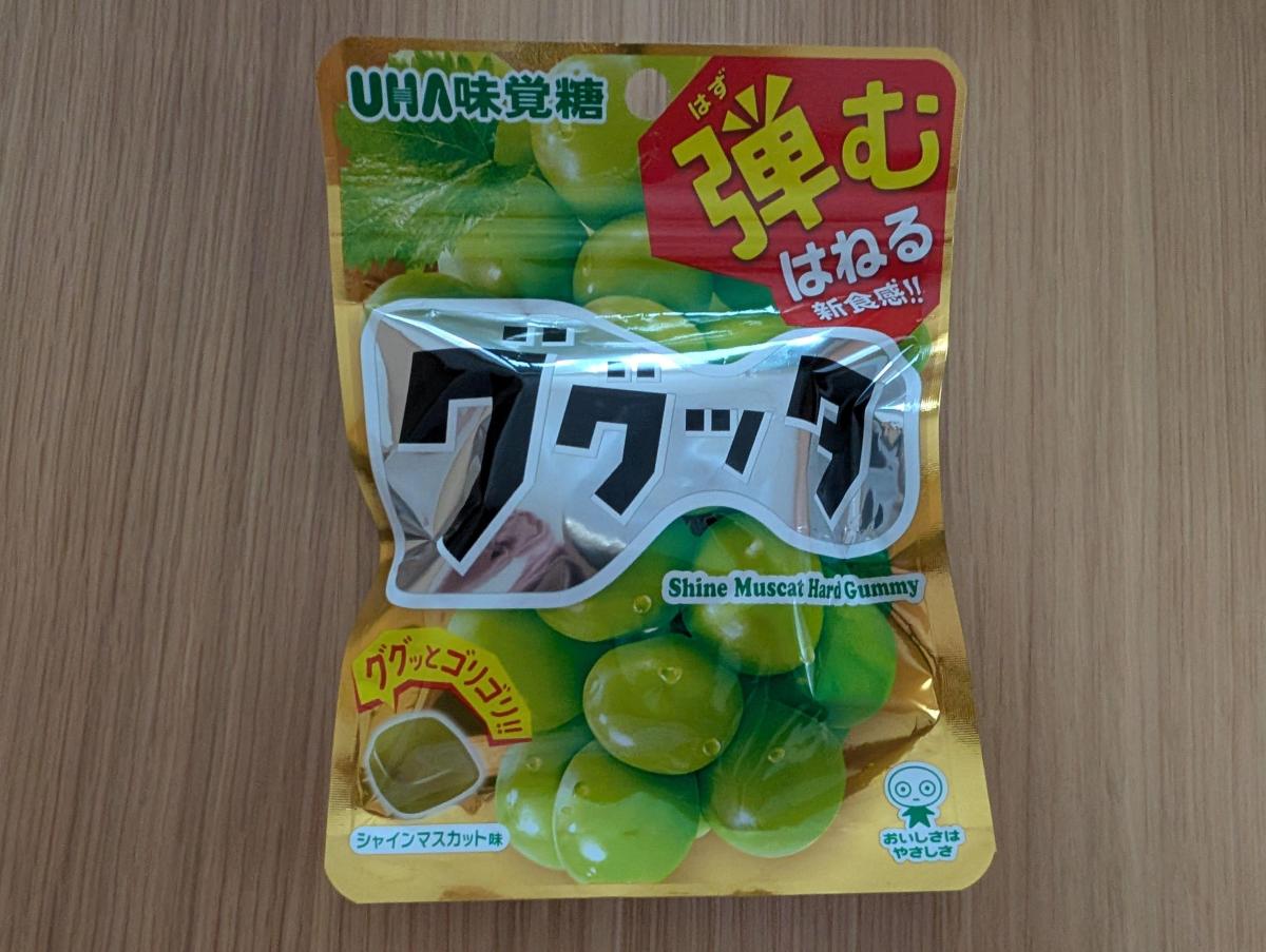 ひと粒が四角い形で小さくて食べやすいです。弾力がしっかりあり、噛みごたえがあるので食べていて楽しいです。ググッタという名前にぴったりでした。シャインマスカット味で、香りも良く甘くて美味しいです。