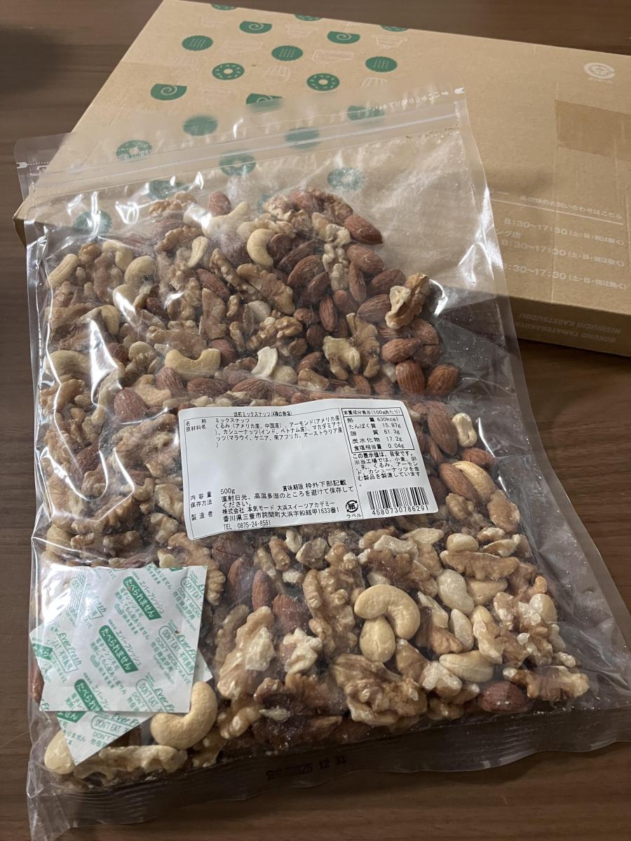 我が家が頼んだのは、ミックスナッツ3種の無塩 500g 寄付金額 3000円