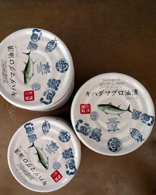 日持ちもして、常温保存可能。なが~く楽しめる食品はと探して、キハダマグロのオイル漬けのツナ缶となりました。シンプルでスッキリとしたデザイン缶は、焼津の魚河岸シャツの柄だそう。パスタ、炒飯、色々と使えました。