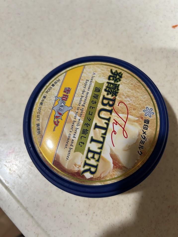 普段は手を出せない高級品の発酵バターがちょっとお得に買えたのでワクワクです。雪印のThe 発酵BUTTER、名前に自信を感じます。丸いフタ付きのパッケージはやっぱりパンに塗るのをおすすめされている気がする。いつもやわらかいマーガリンを使っているのでちょっと固いです。これをトーストにのせてちょっと溶けるのを待ってから塗る。少し固まりを残しておくとそれが美味しい。生クリームのような濃厚なミルキーさが本当に美味しい。たまにバター丸かじりしてる人はヤバい人だと思ってたけどこれならできそう。パンにのせて溶けてないとこ食べるのが最高です。