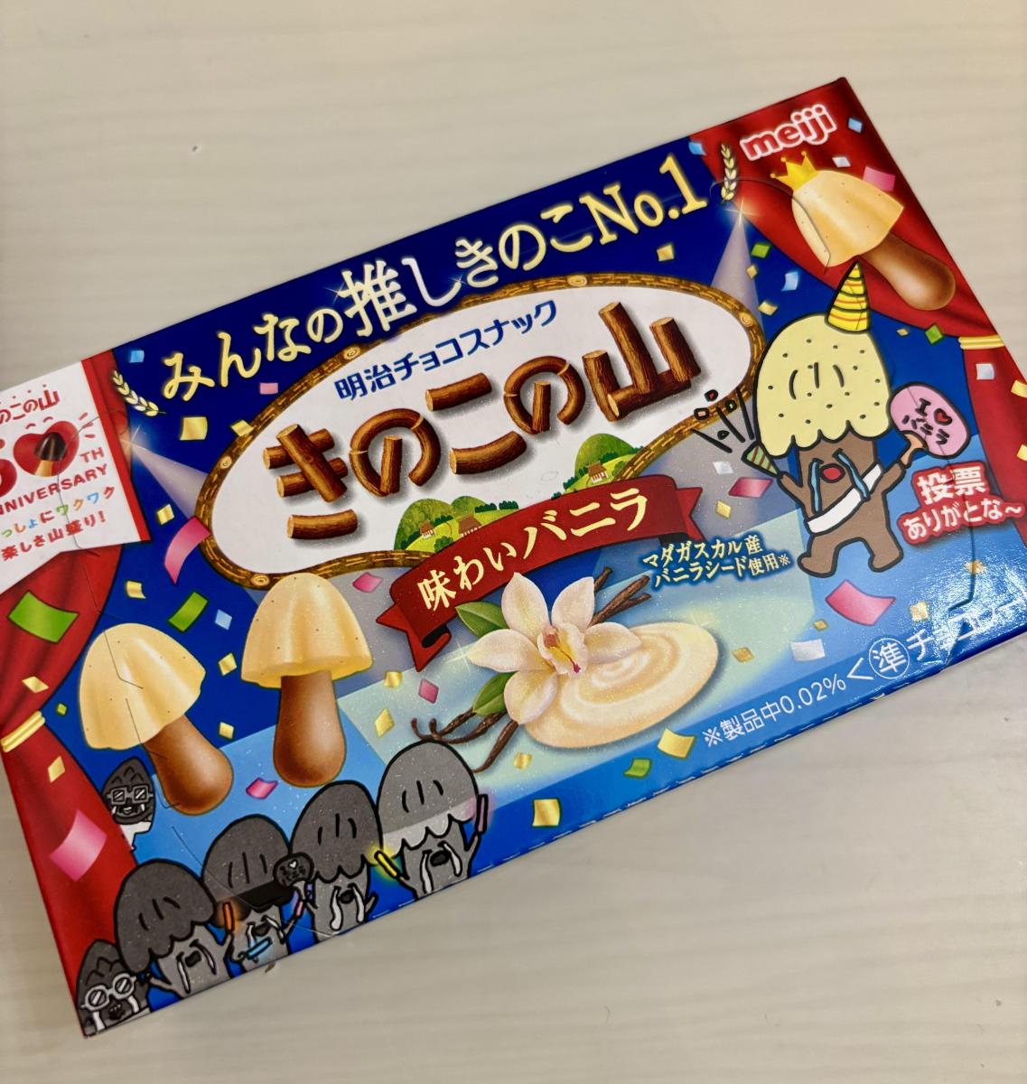 とのことで、たしかにいつものミルクチョコのきのこの山よりバニラチョコのきのこの山の方が好みかも。バニラも良いけどホワイトも出て欲しいなぁ。1箱にたっぷり量で満足感が高いし、人気だったことがわかるおいしさだった。