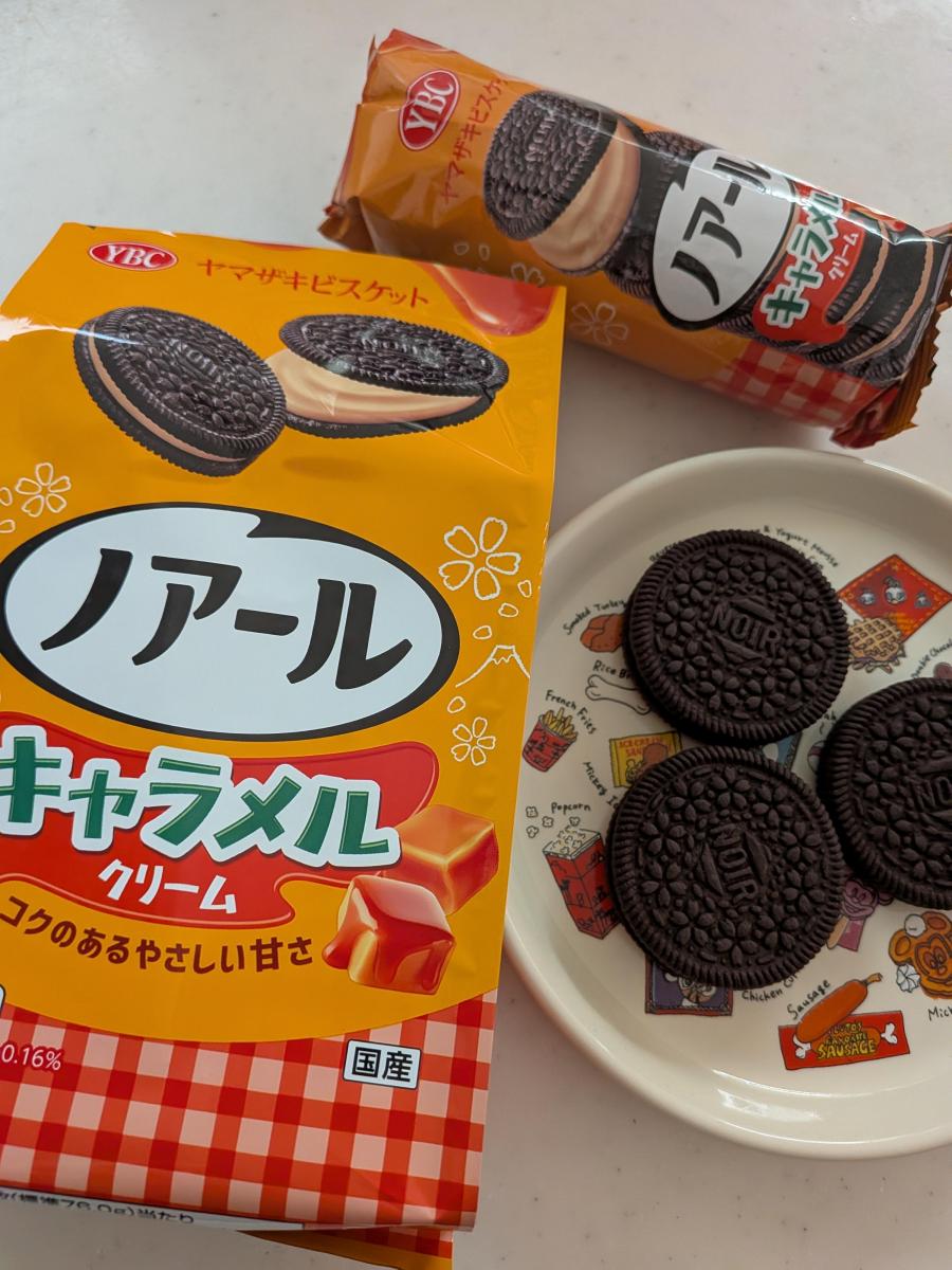 サクっと食感のココアビスケットに甘くて、香りが良いキャラメルクリームがサンドされています。クリームが甘いので苦味のあるビスケットと相性抜群です。ミルクコーヒーにピッタリでリッチなおやつタイムになりました☕️