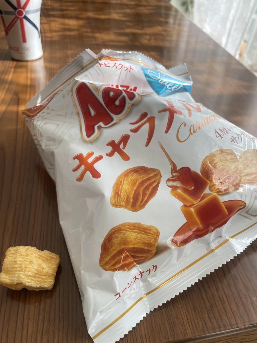 見た目は薄味そうだけど、食べてみると良い感じ!コク深くてあま〜く香ばしいキャラメルの風味がふわっと。エアリアルならではのコーンスナックの香ばしさと4層のサクサク感がやみつき。キャラメルが濃すぎないからコーンの香ばしさとほのかな塩っけも感じられる。濃すぎないのが飽きなくてちょうど良いかもだけど、このキャラメルならもっと甘さと塩気が濃くても良いくらいかも。
