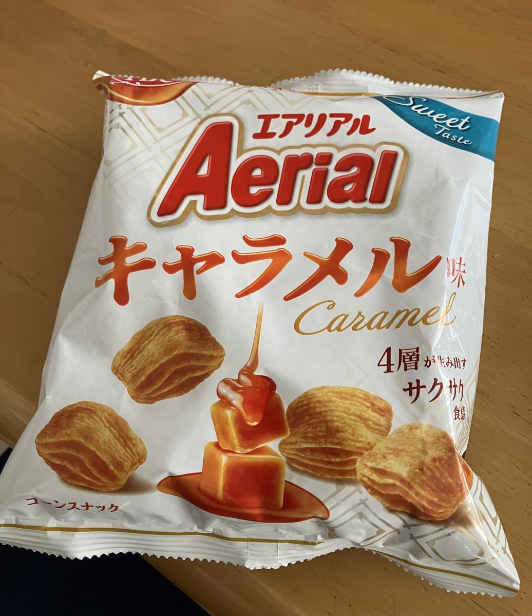 ふわさくした食感が軽くて心地よいエアリアルのキャラメル味バージョンです。ベースのコーンの風味も十分に感じられるほどよい甘みがあり、美味しいです。