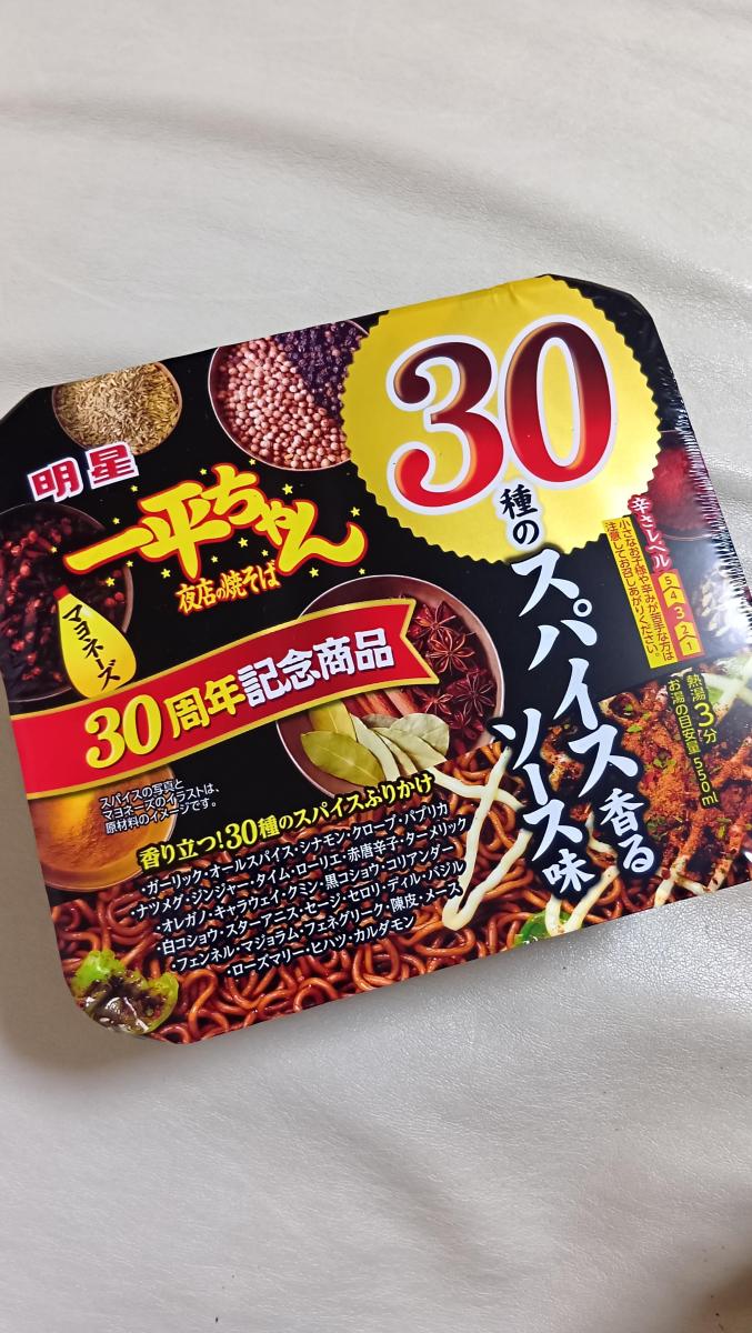 30種類のスパイスの名称がズラッとパッケージに書かれているのだが、食べてみると確かに普通は焼そばに使わないような複雑な味がする。基本的にはピリッと辛味のある味のふりかけで、舌の上ではコショウのようなビリビリ感が踊るような印象。ただこのビリビリには色んな風味が含まれていて、これが30種類というキーワードに説得力を与えてくれているなと思える。ただふりかけの風味が強すぎてもうひとつの一平ちゃん焼そばの主役のマヨビームも陰に隠れてしまうくらいで、もう少しマヨビームを増量するとかということがあってもいのかなとは思った。