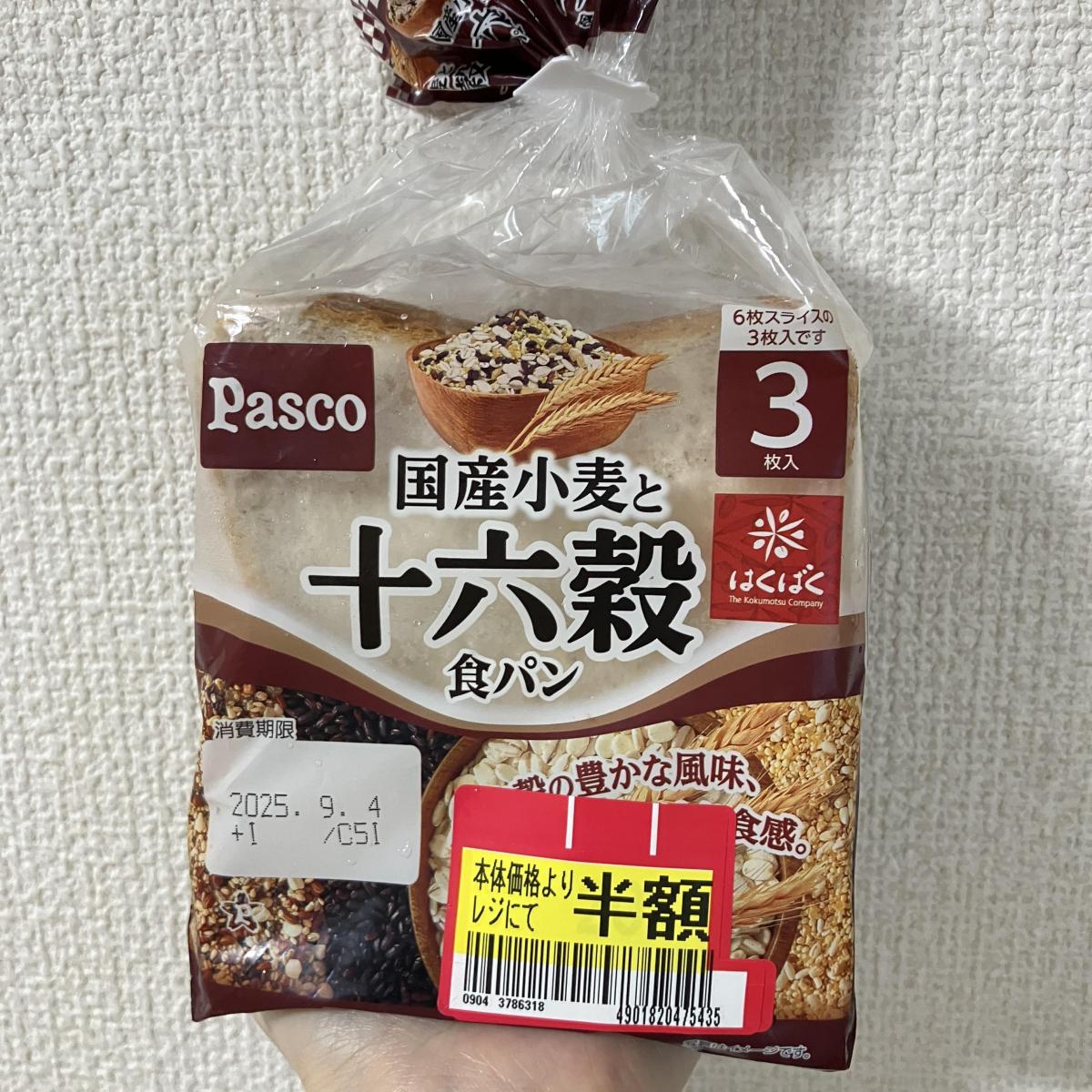 パスコさんのちょっと高めな国産小麦のシリーズはどれも美味しくって大好きです。はくばくさんの十六穀が入っているので、風味もよく食感のプチプチ感も楽しめます。トーストしてバター塗って食べるのが好きです。薄めのスライスなのでサンドイッチにしても美味しいです。パッケージも高級感あってお気に入りです。またリピートしたいです。