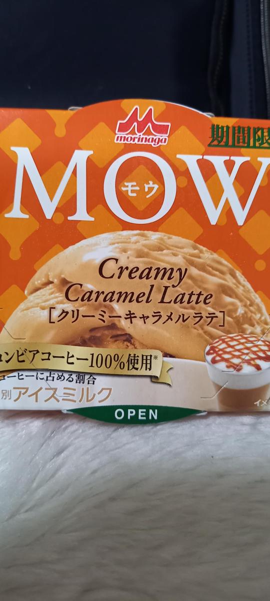 MOWのクリーミーキャラメルラテが目に止まった瞬間、買うと決めました。オレンジカラーがベースの、キャラメルラテとアイスの画が凄く素敵です。しかも、期間限定ですから。蓋を開けると、確かにキャラメルとコーヒーの香りがし、食べてみると、舌触りは滑らかで、キャラメルの甘さの中にもコーヒーの苦味がしっかりあって、コロンビアコーヒー100%使用されているのが美味しさの秘訣なのでしょう。
