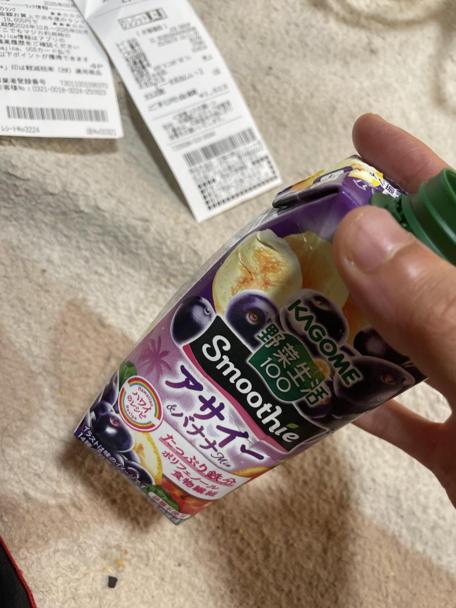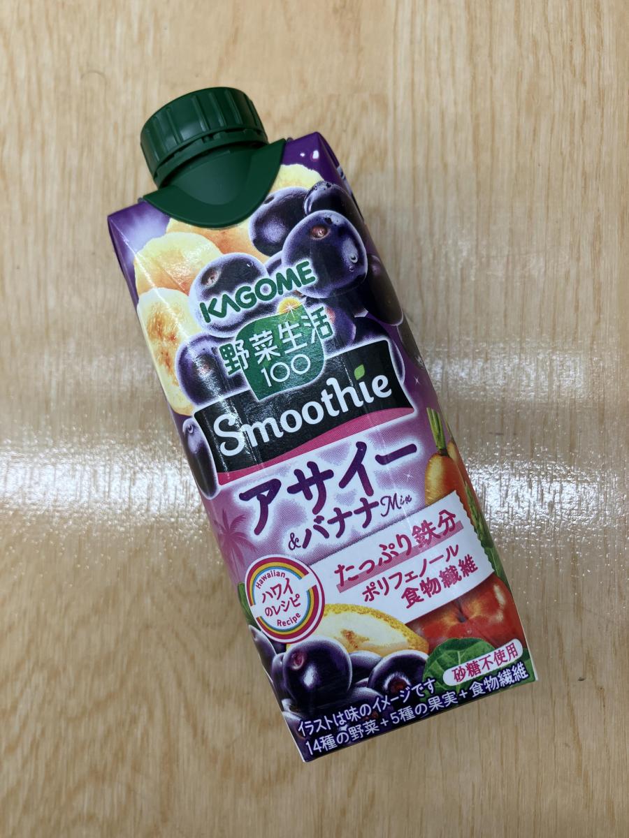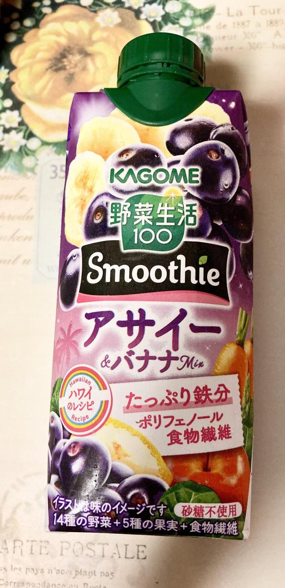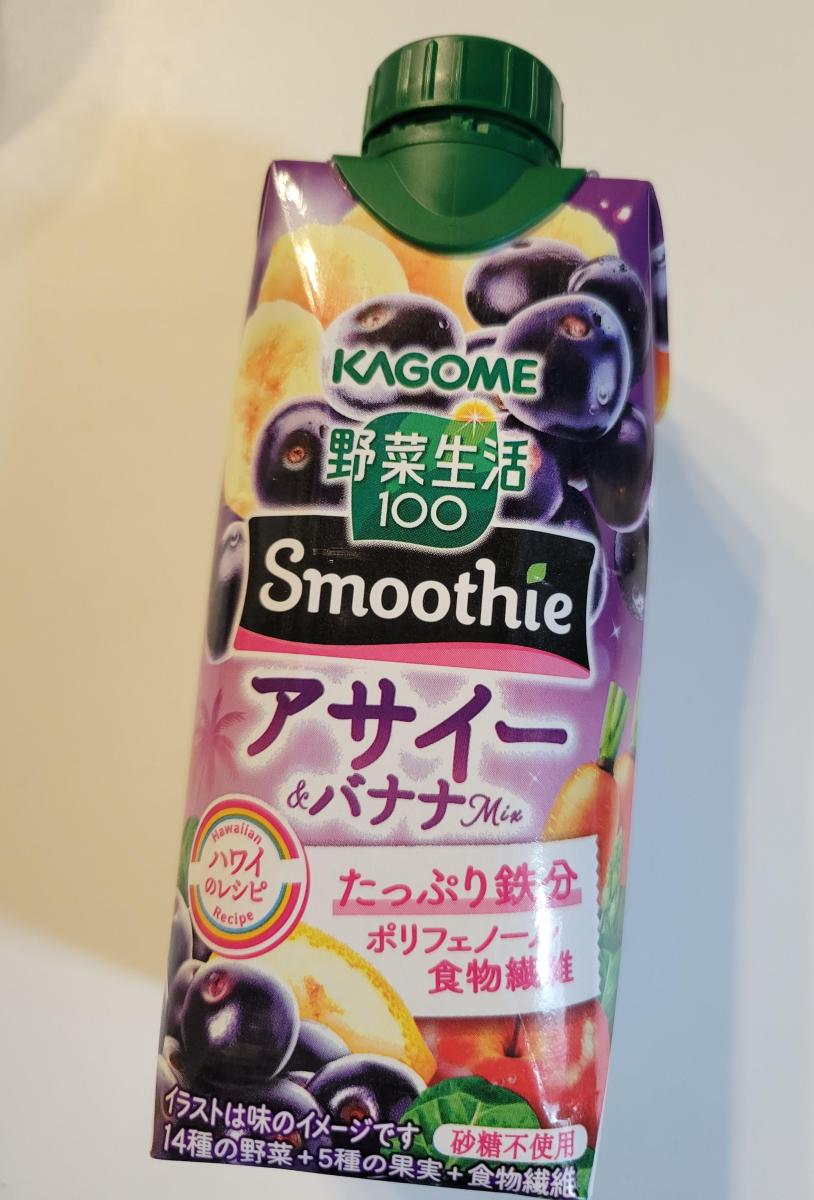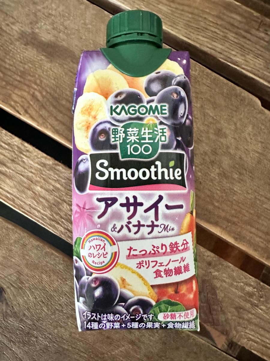 野菜生活が大好きでしかもアサイーが気になり購入してみました。飲んでみるとかなりのトロミ感がたっぷりで満腹感があります。アサイーのフルーティーな酸味とバナナのやさしい甘みでそこまでバナナが強めではないので飲みやすいです。野菜もそこまで強めに感じず飲みやすくて鉄分たっぷりで、ポリフェノールと食物繊維が摂れるならもっと飲んでみたいなと思いました。
