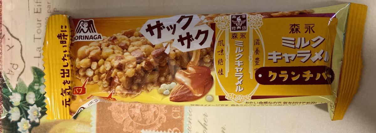 森永のバータイプのお菓子が最近いろいろ売っていて魅力的です。食べてみるとどれも、お菓子としても栄養バーとしても中途半端な気がしていました。新商品のこちら、クリスピーなパフを固めたようなとても軽い食感で、キャラメル風味の甘味がつけてあります。なんだか甘いだけであまりピンときませんでした。