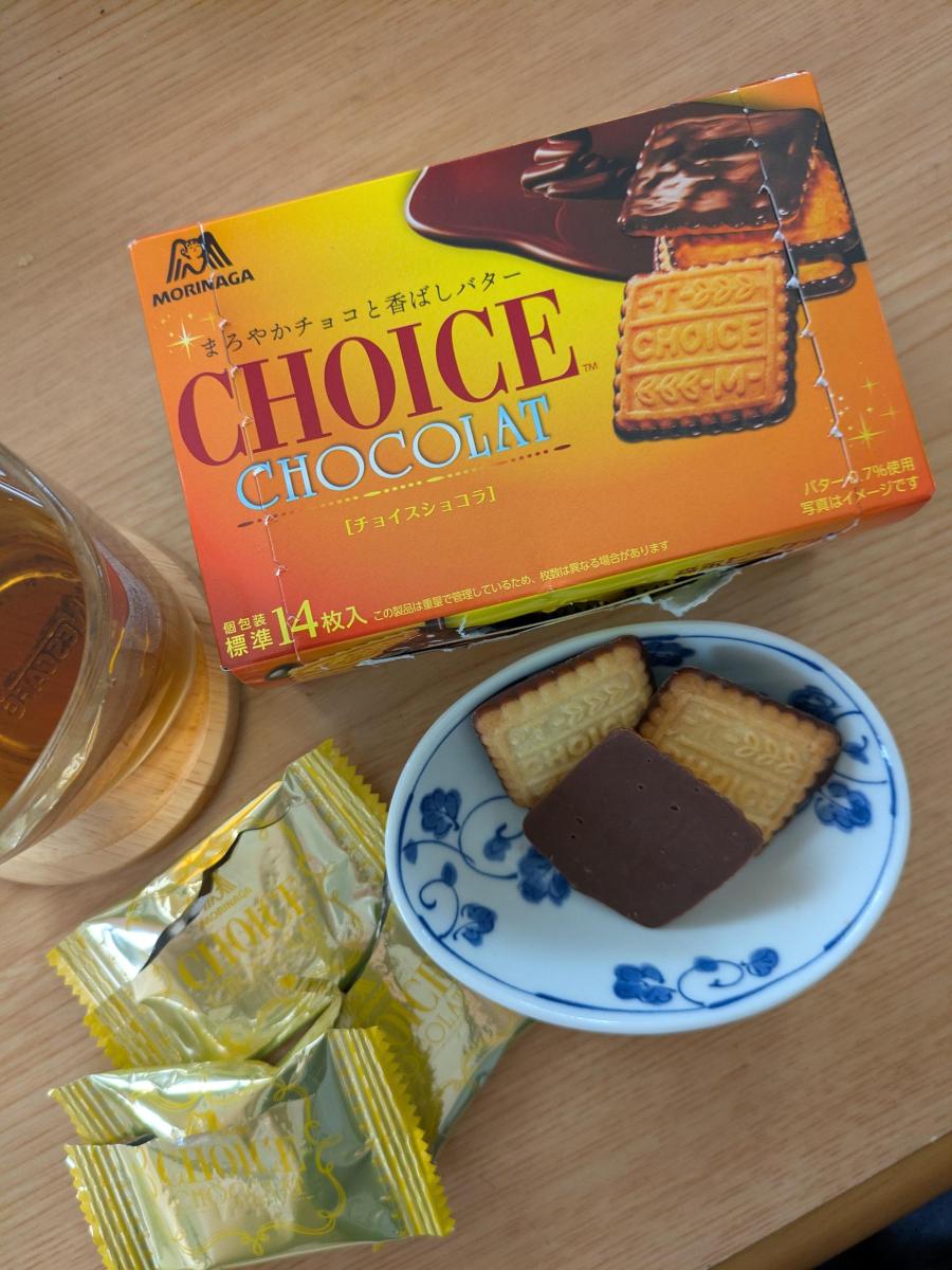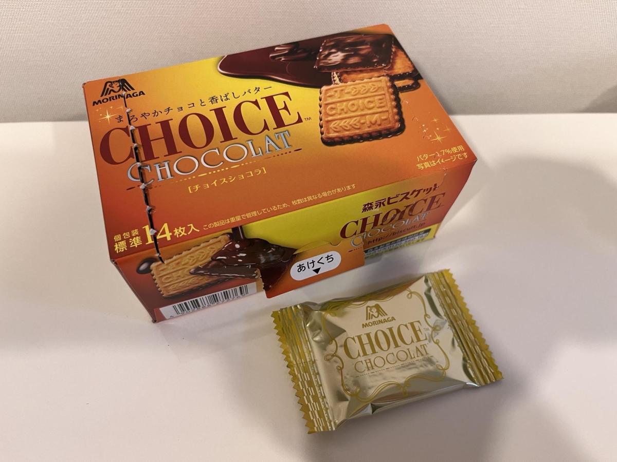 チョイスにショコラ味が出ていたので気になり購入してみました。小分けされているのでシェアできて大変便利です。ビスケットはいつものチョイスよりバターの香りが感じサクサクで軽い食感がいい感じです。まろやかなミルクチョコレートと相性が良くて甘さはありますが、チョコとのバランスがよく美味しかったです。