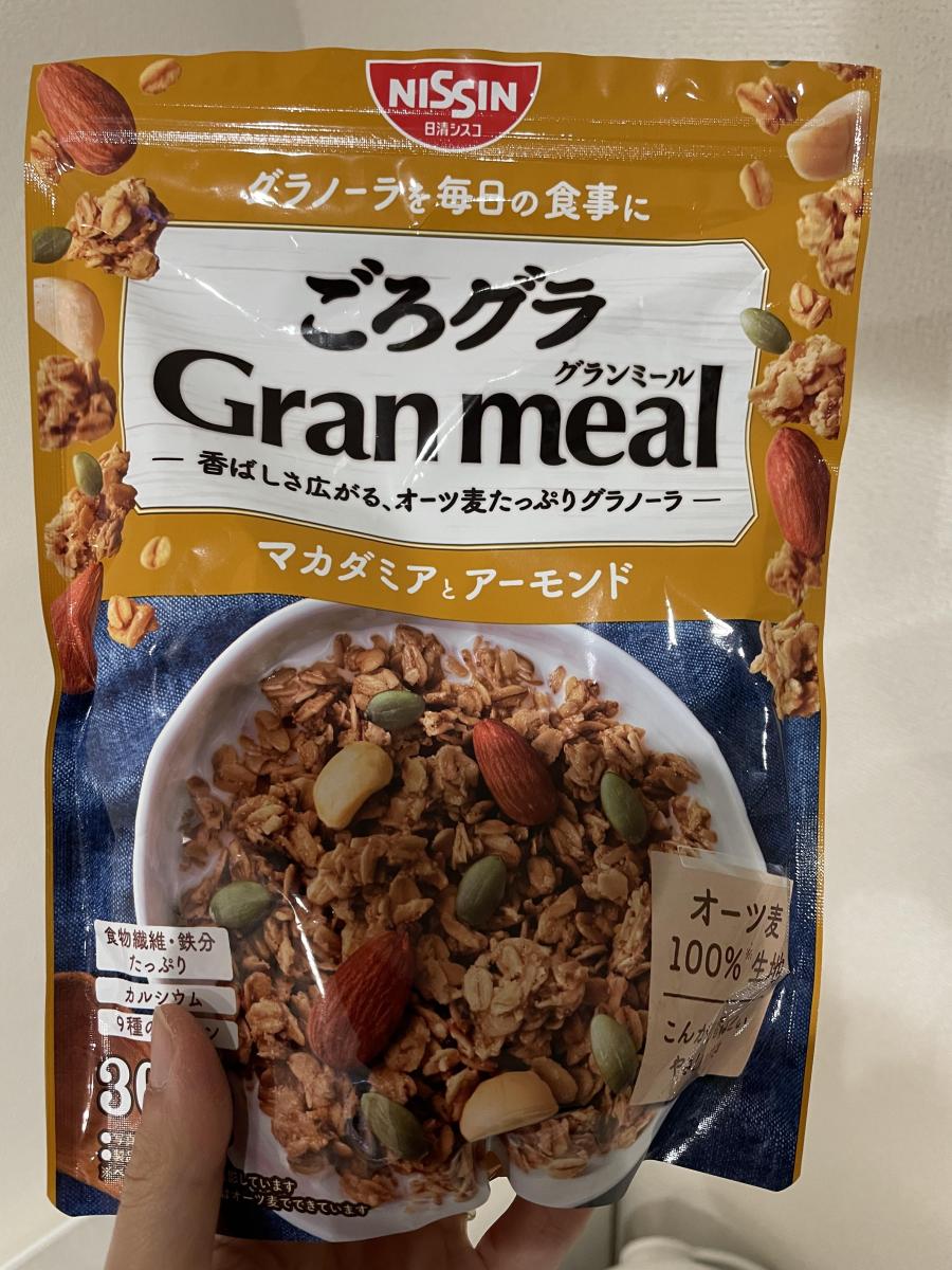こちらのごろグラはかなり甘さが控えめです。オーツ麦のグラノーラがかなりザクザクとした食感で食べ応えがあります。アーモンドやカボチャの種、カシューナッツなども沢山入っていて美味しいです。