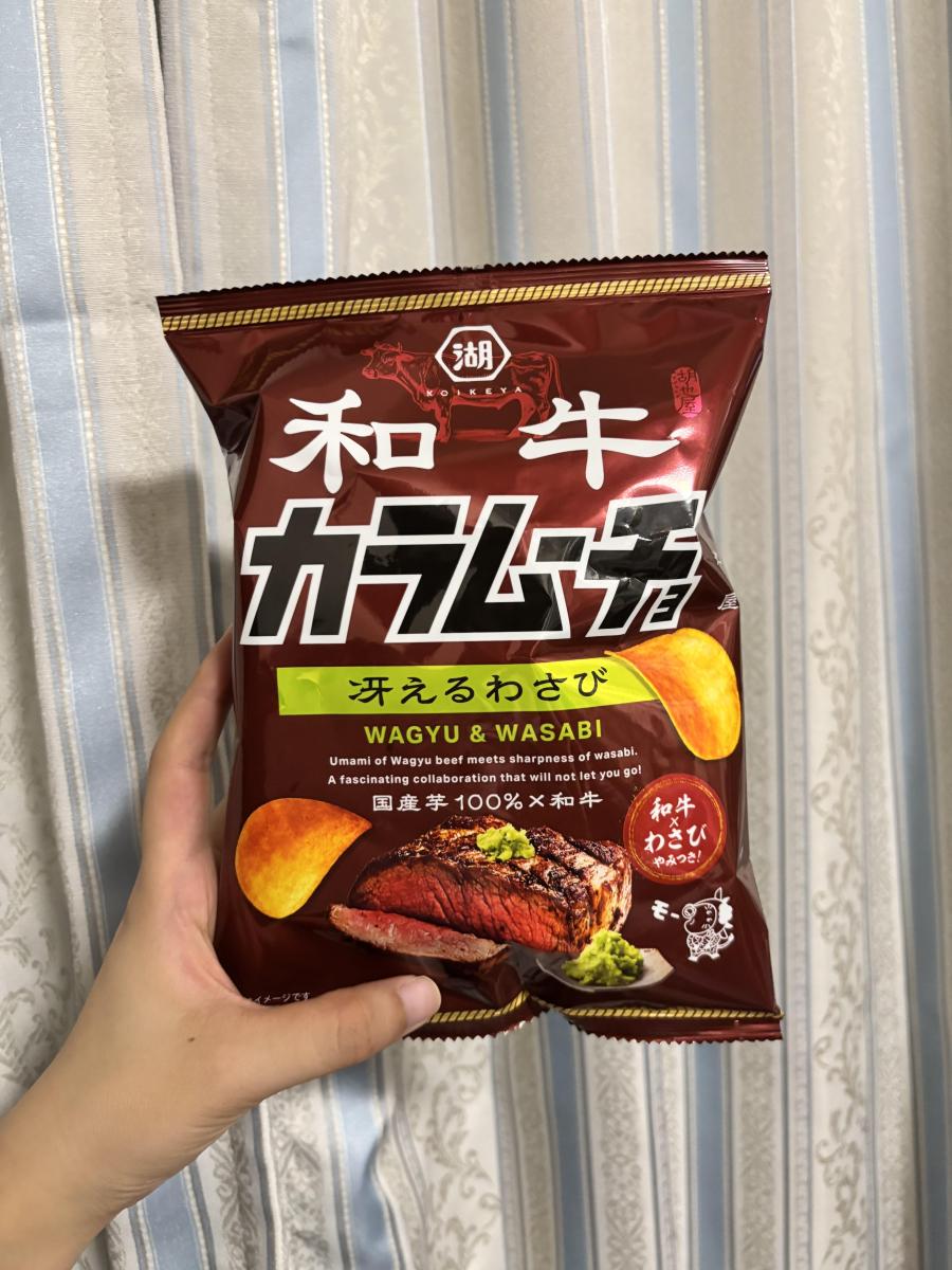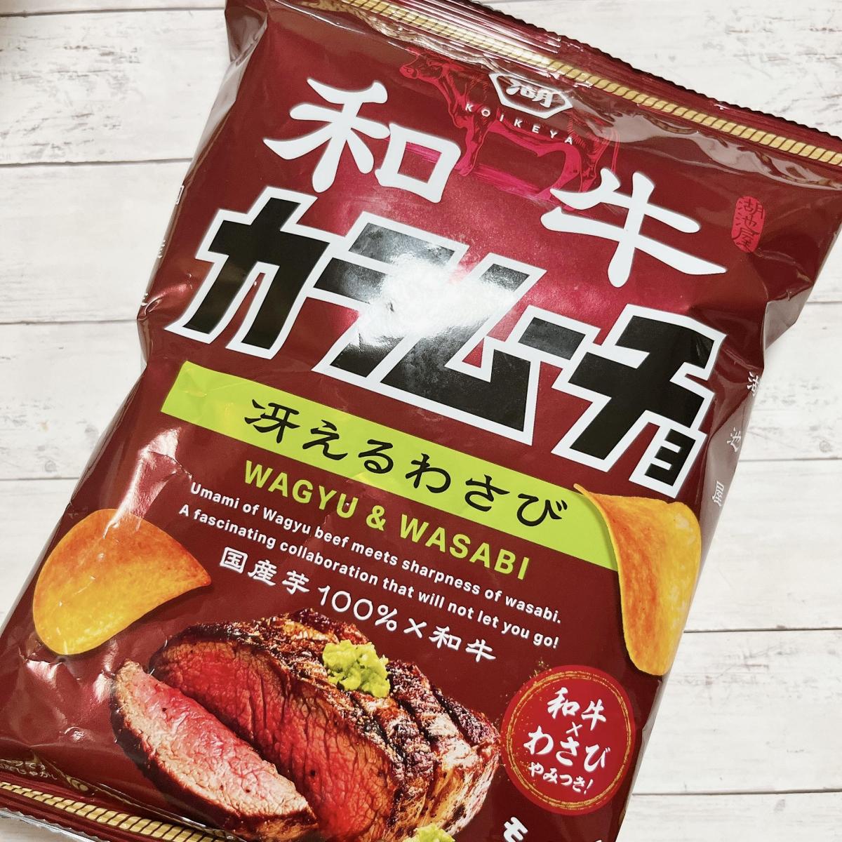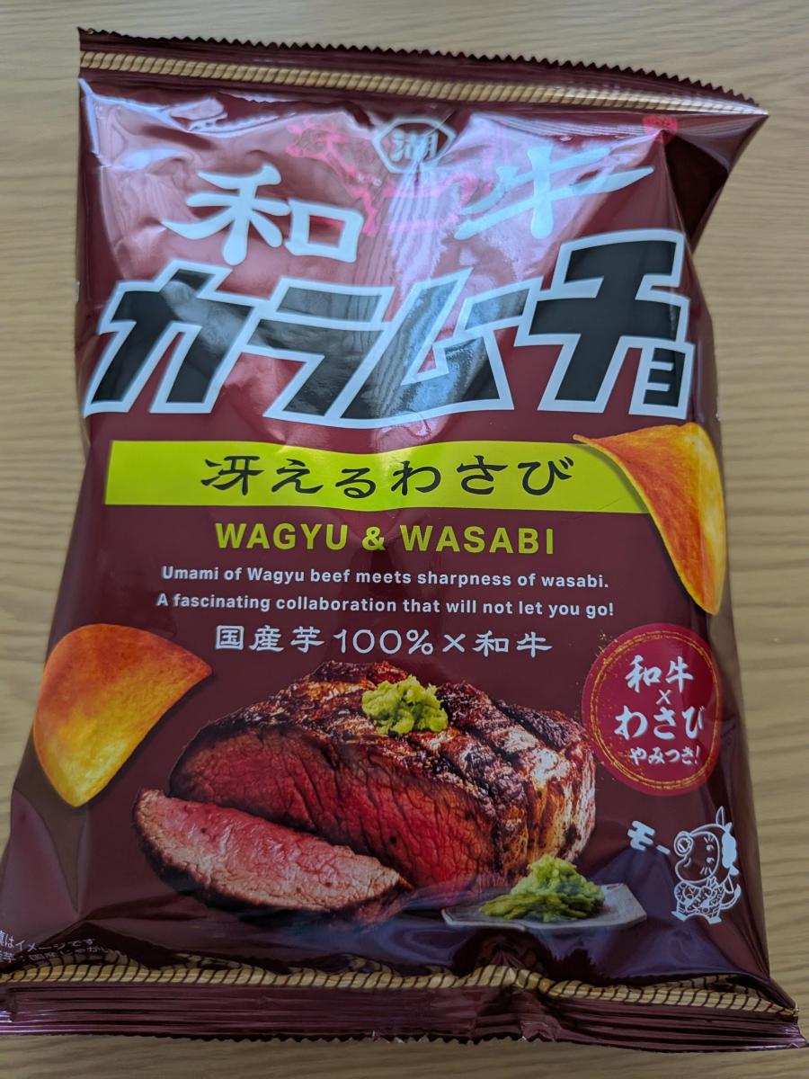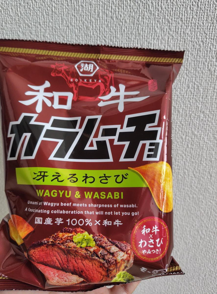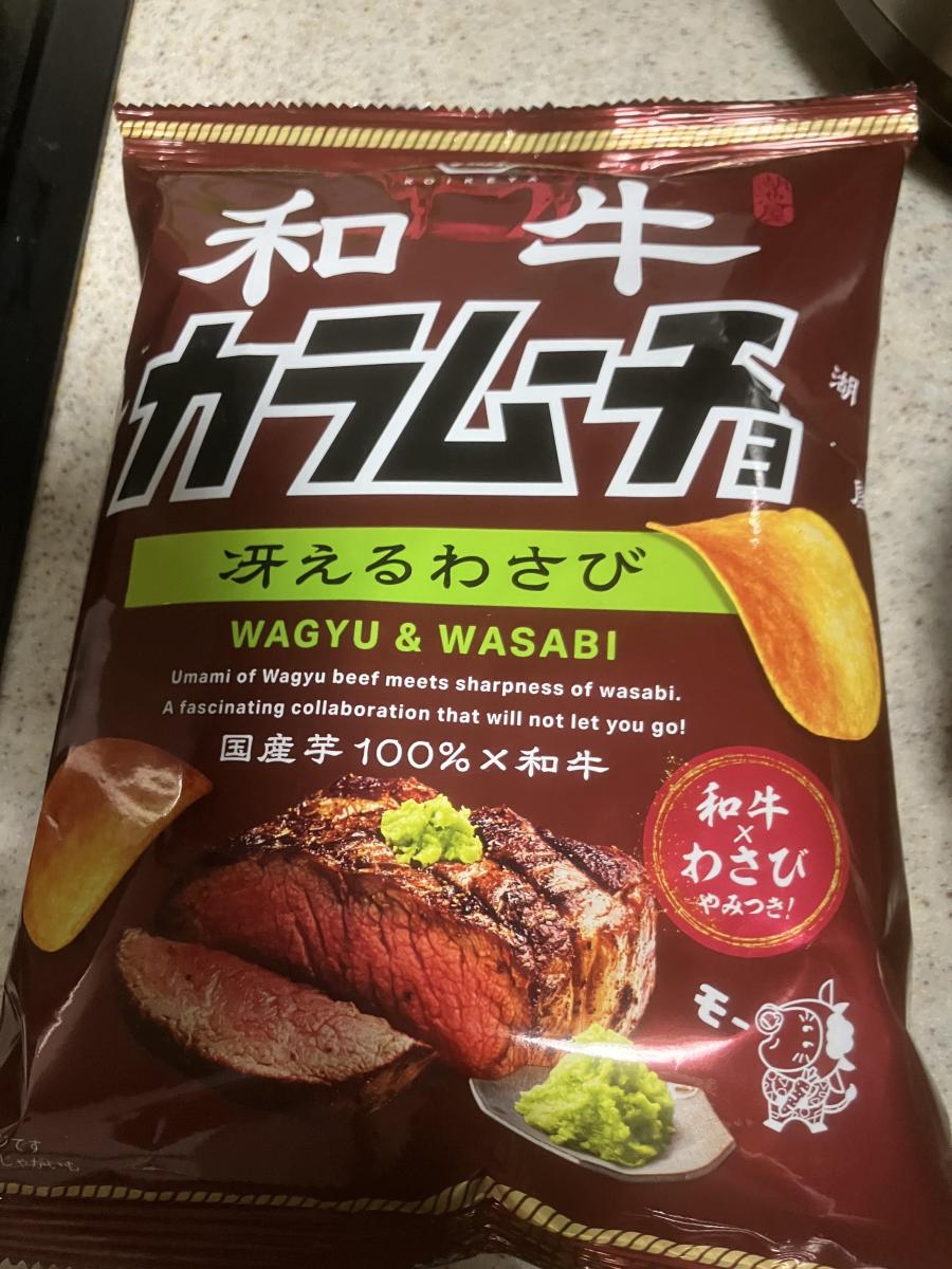 カラムーチョのわさび味だから、かなり強烈なものを想像していましたが、ちょうどいいわさび味のポテチです。ほのかに和牛の味わいも楽しめます。