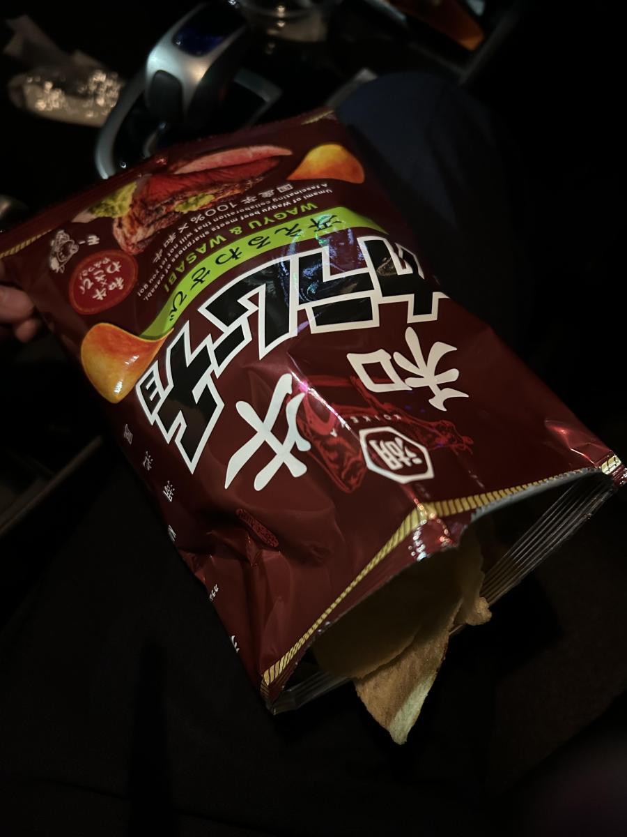 パリパリ食感のポテトチップスに、牛の旨味とほどよいわさび感がきいていて美味しいと感じました。