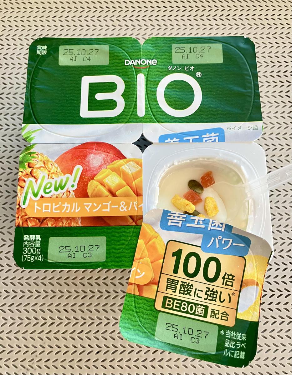 大きくはありませんが、マンゴーとパインの粒々の果肉が感じられて、嬉しかったです。濃厚でクリーミーなヨーグルトがよく絡んで、まさにトロピカルな味わいでした。胃酸に強いBE80菌が配合されているので、お腹にも効果があり、毎日、食べ続けると、お腹がスッキリするのが嬉しいですね。