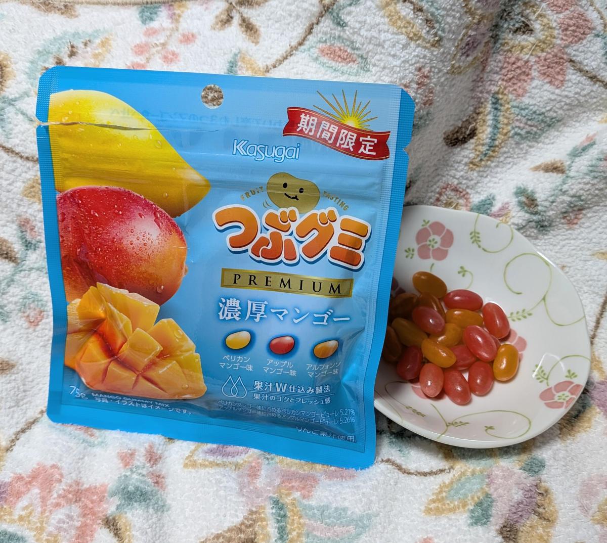 つぶグミから、濃厚マンゴー味が出ました。マンゴーの風味が大好きなので、待望のフレーバーが出たなと、嬉しくなりました。