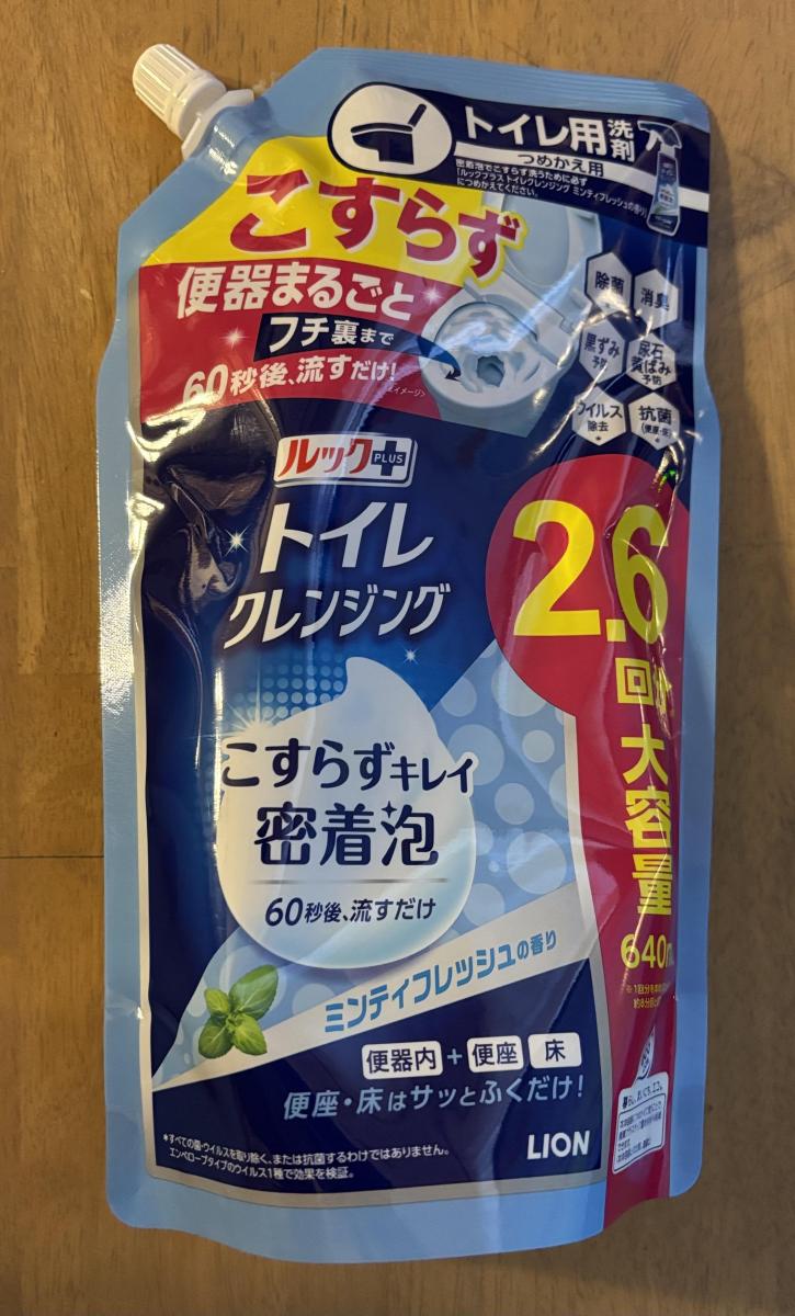 ルックプラス トイレクレンジング〈ミンティフレッシュの香り〉を新発売と知って購入しました。ルックの洗剤は普段から愛用していますが、これは軽くこするだけで汚れが落ちる感じがして使い勝手が良いです。何よりミントのすっきりした香りが爽やかで、掃除の時間が心地よくなるところがお気に入りです。