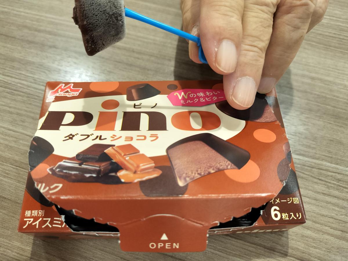 ミルクチョコのアイスにビターなチョコのコーティングがされていて、 全体としては濃厚なチョコアイスになっていました。いつものピノより大人の味わいに感じます。少し寒くなってきた時期に ぴったりのアイスだと思います。
