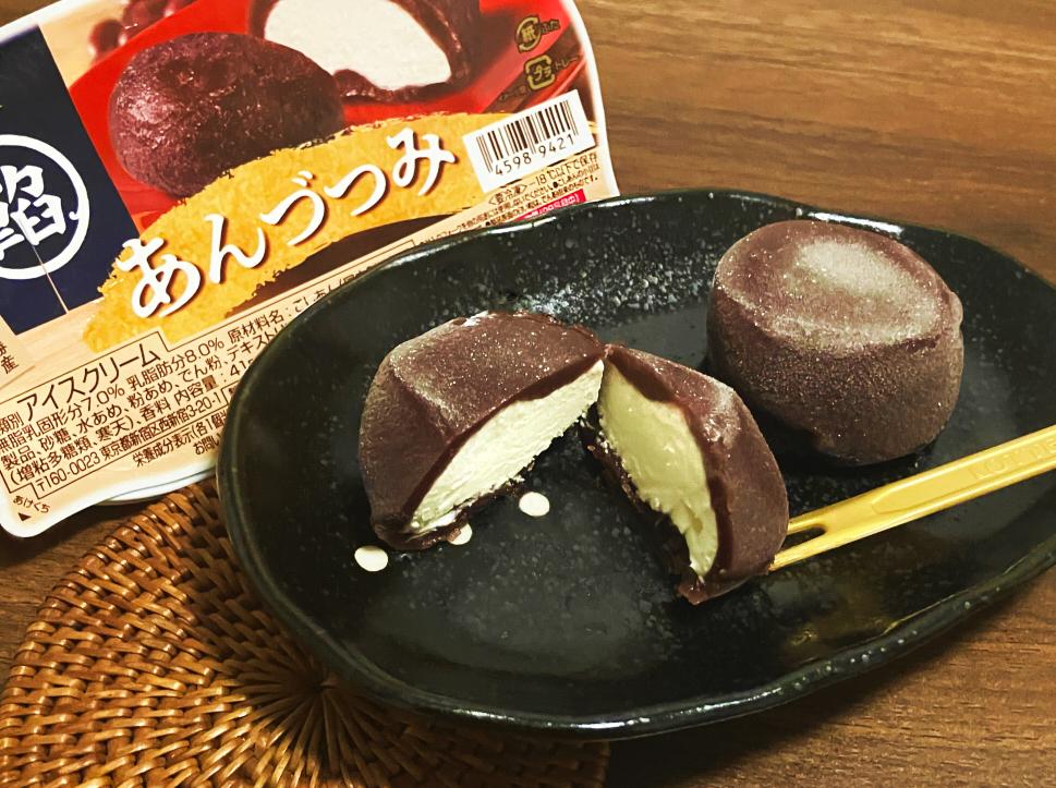 あんこの中にバニラアイスというシンプル構造。味は、こし餡のなめらかな口当たりとコクのある味わいに、バニラアイスのさっぱりとした甘さが美味しかったです。すぐに食べると硬いかな?と思いましたが、あんこがしっとり柔らかい。逆に早めに食べないとあんことアイスが分離しますね。