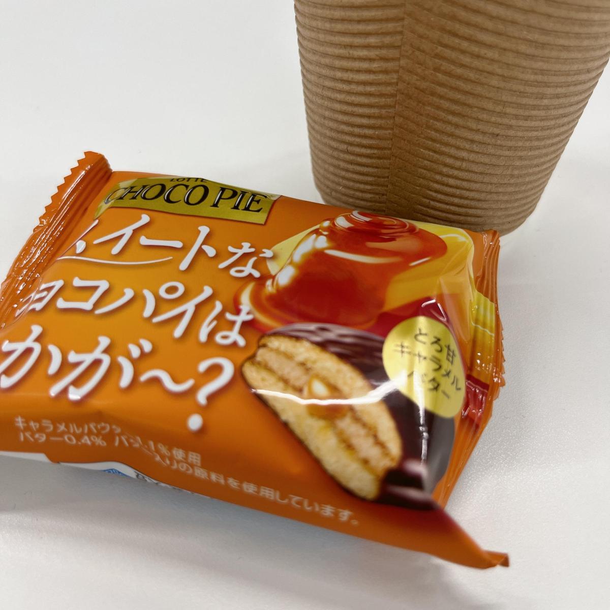 恒例(?)のチョコパイ2種から濃そうなキャラメルバターをセレクト。