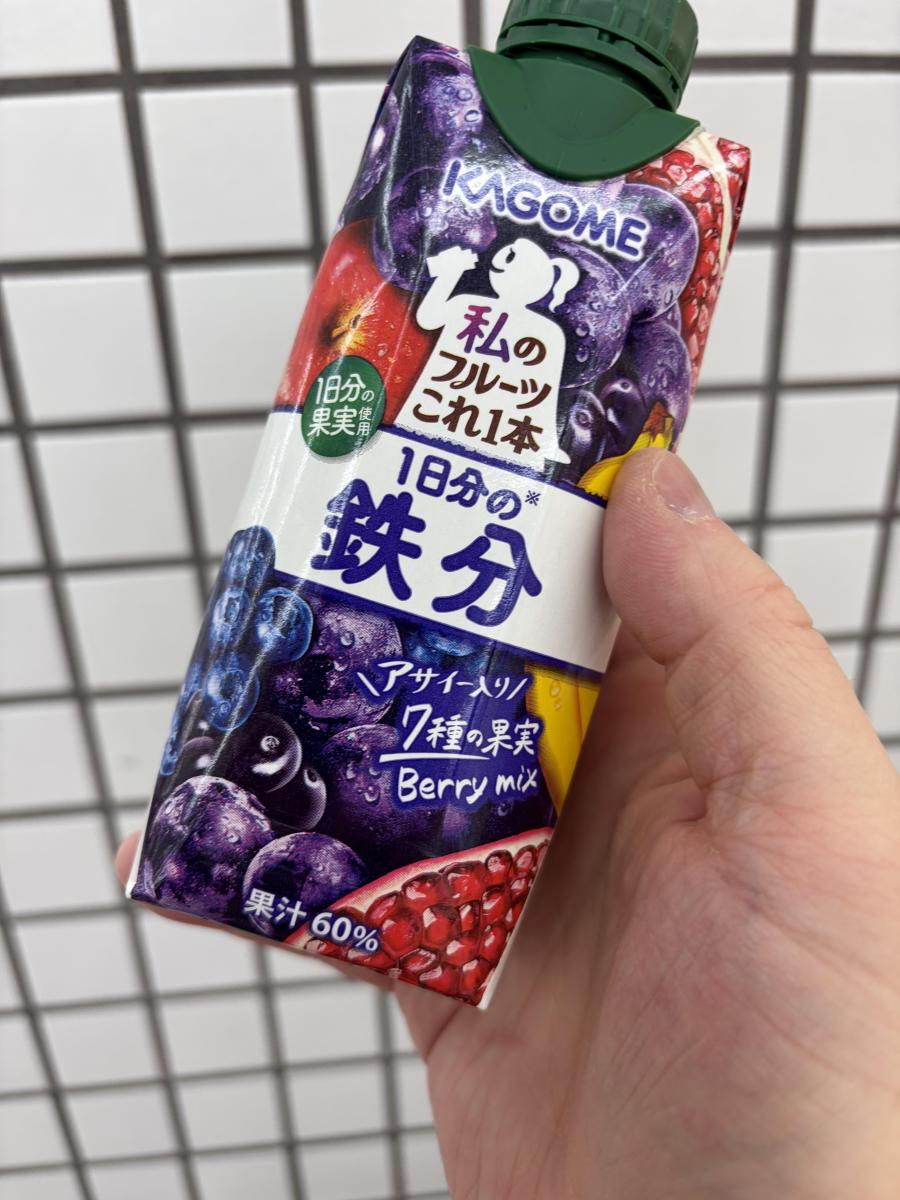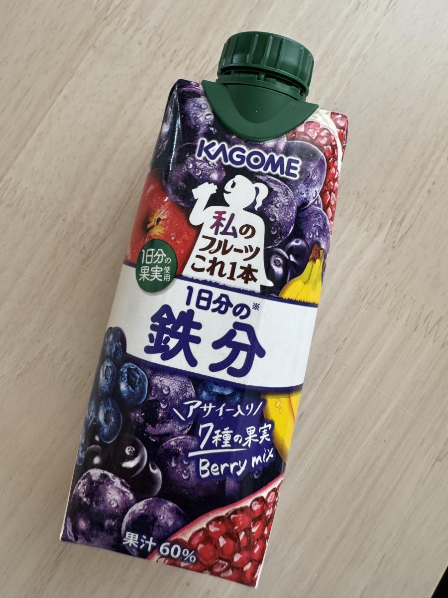 ぶどう、ブルーベリー、アサイーの渋みがある7種の果実ブレンドの秋らしいおいしさ。鉄分たっぷり1日分と1日分の果実を手軽にチャージ出来て嬉しい。