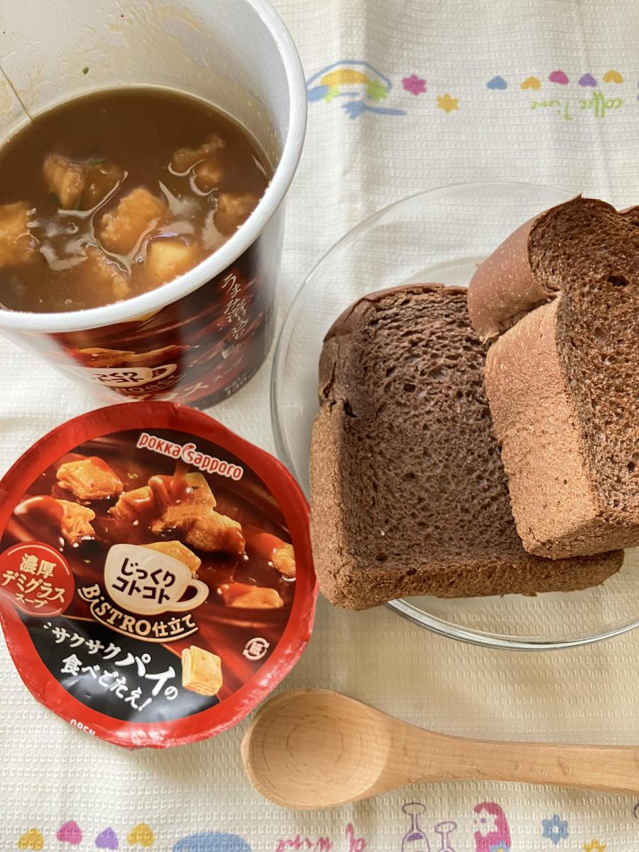 チョコ味食パンと一緒に食べましたがチョコのほろ苦さとデミグラススープのまろやかな甘みが合い