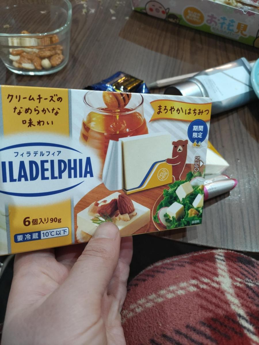 なめらかでコクのあるクリームチーズにはちみつの風味がついています。はちみつ入りだけどあまさは少ないかな。うめー!うめー!と叫びながら食べました。