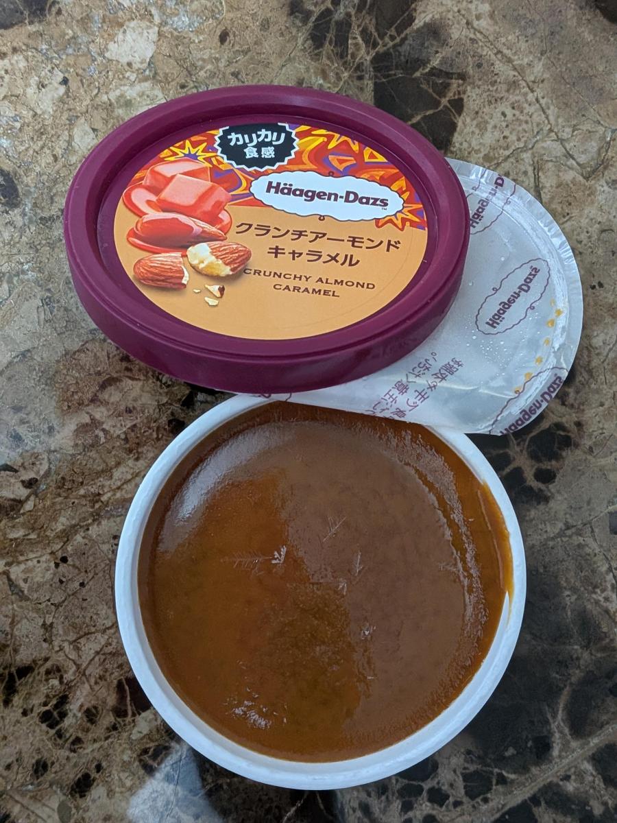 自分の中で特別感があるハーゲンダッツ。キャラメルとアーモンドの組合せは間違いないと思って購入してみました。