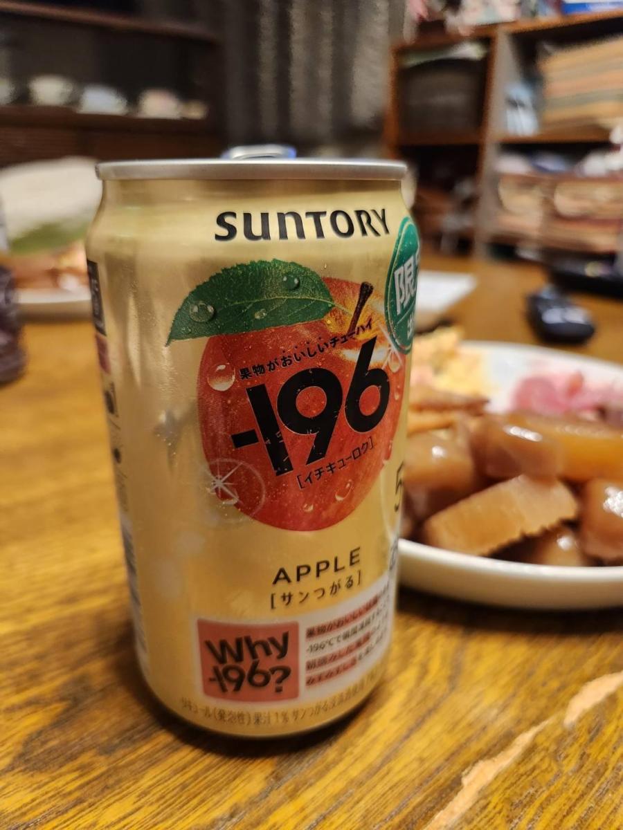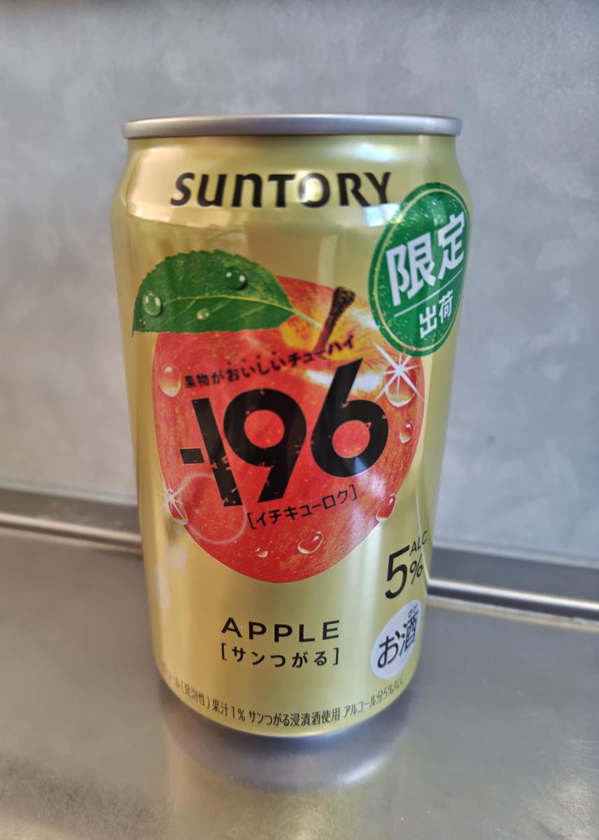 サントリー−196の限定出荷品です。サンつがるという品種のりんごを使っているようで、ほどよい酸味あるりんごの果汁感が高く、爽やかですっきりした味です。