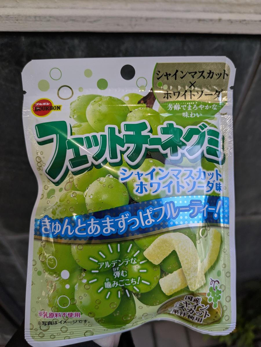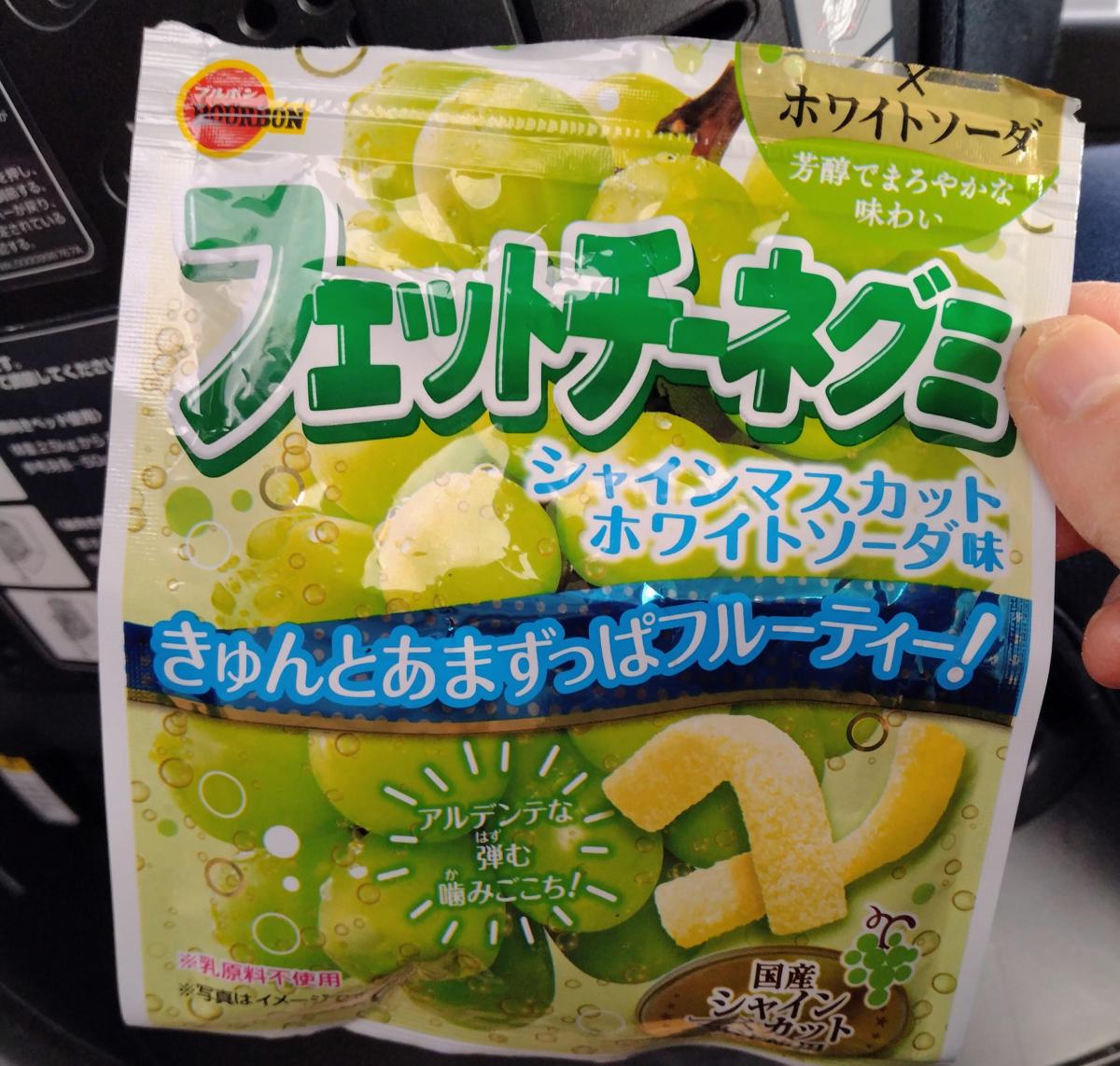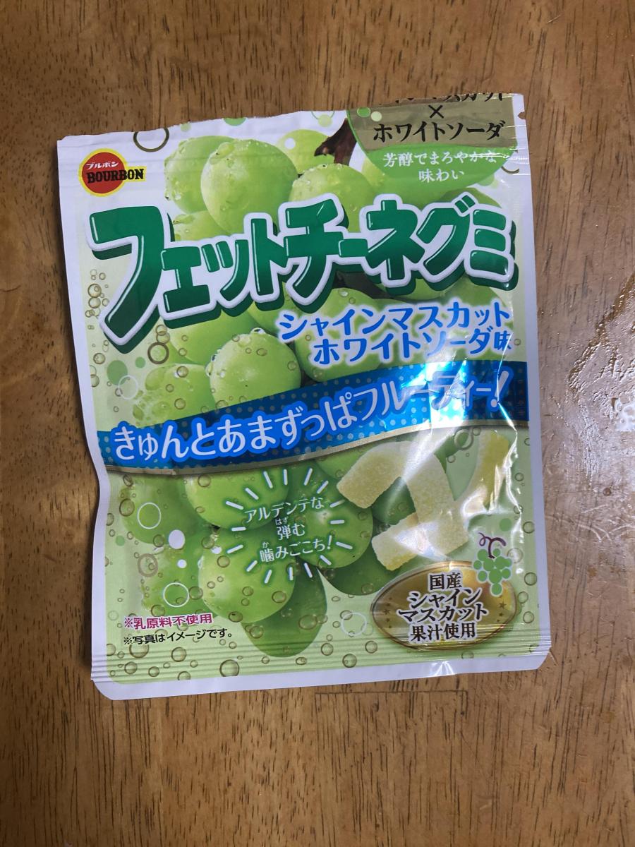 この時期は色んなお菓子が期間限定でシャインマスカット味のものを出しますが、この商品のようにホワイトソーダと組み合わせてよく纏まった商品は少ないので素晴らしいです。