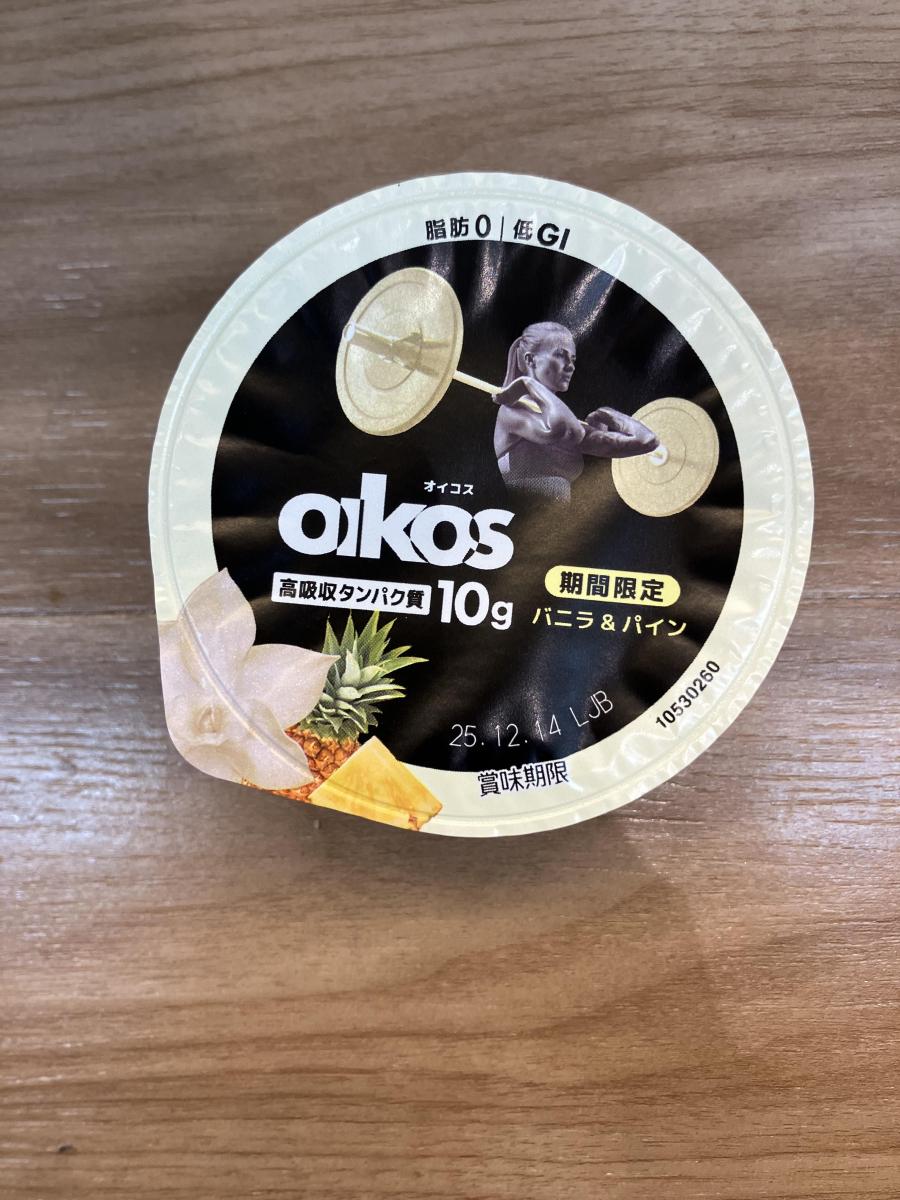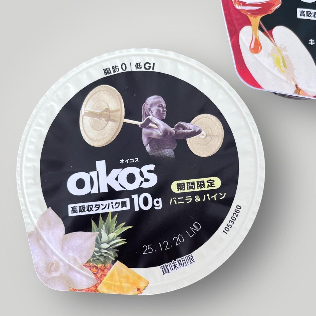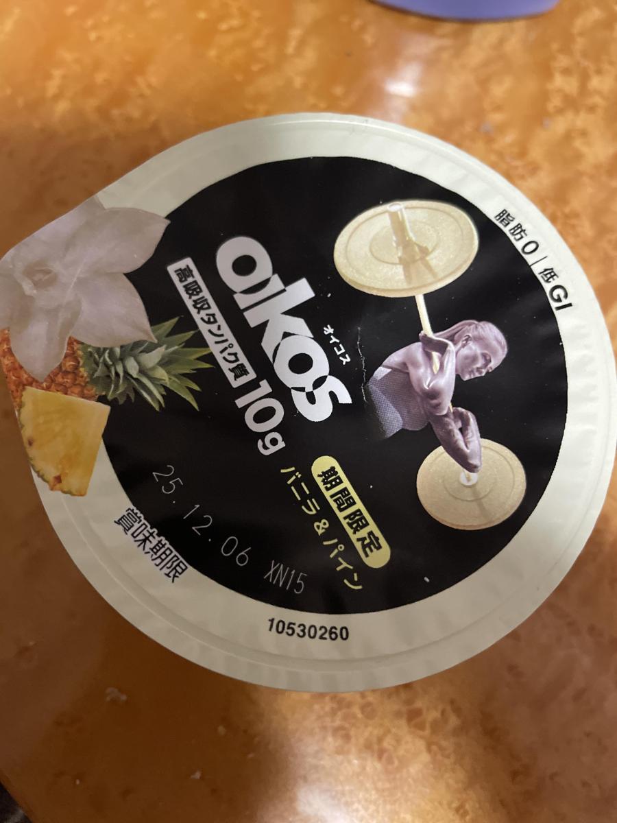 オイコスのバニラ&パイン。美味しそうだと思い購入しました。