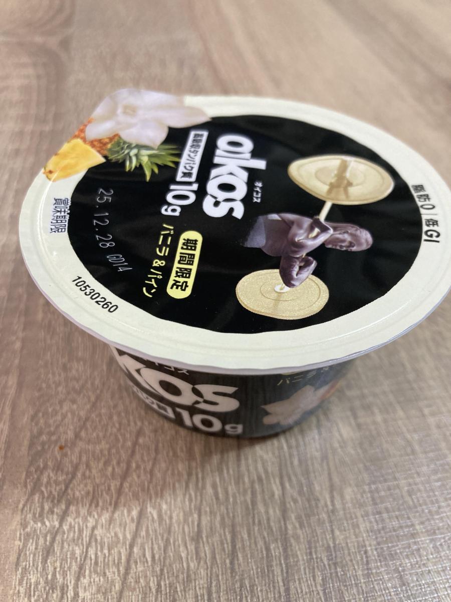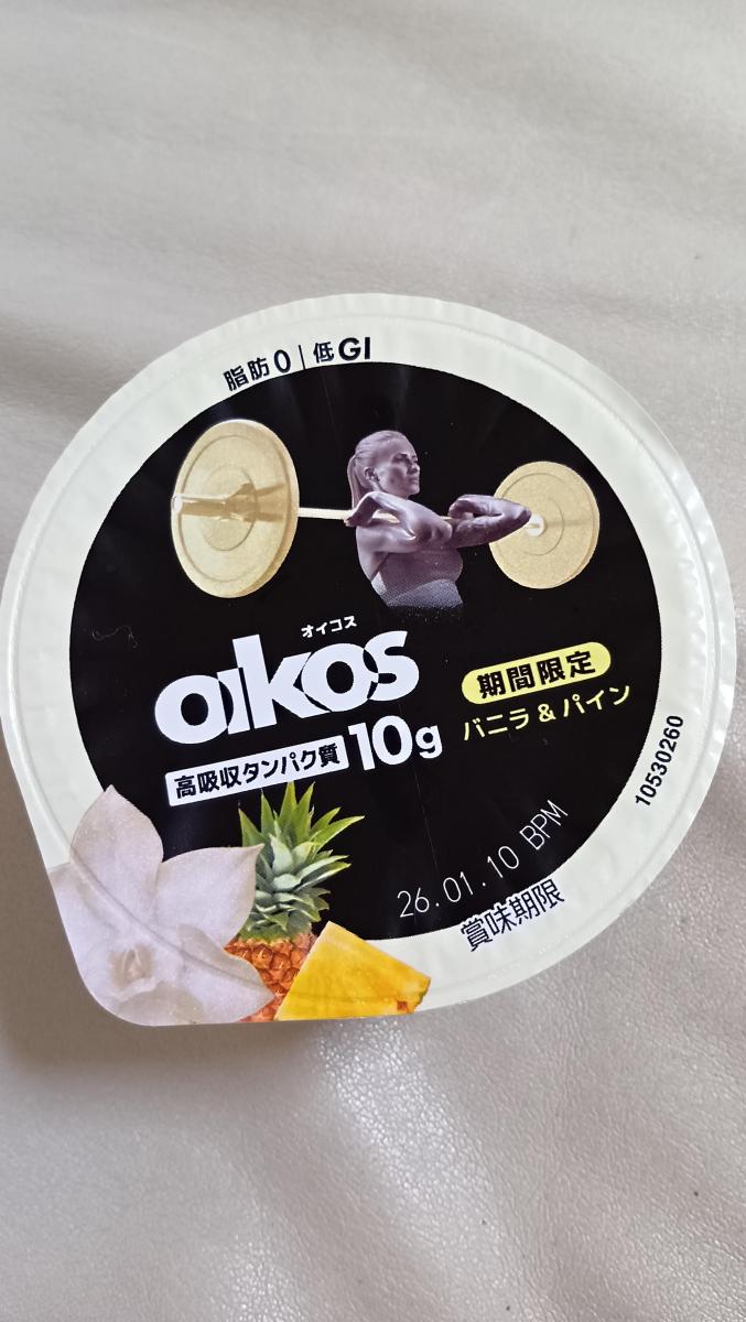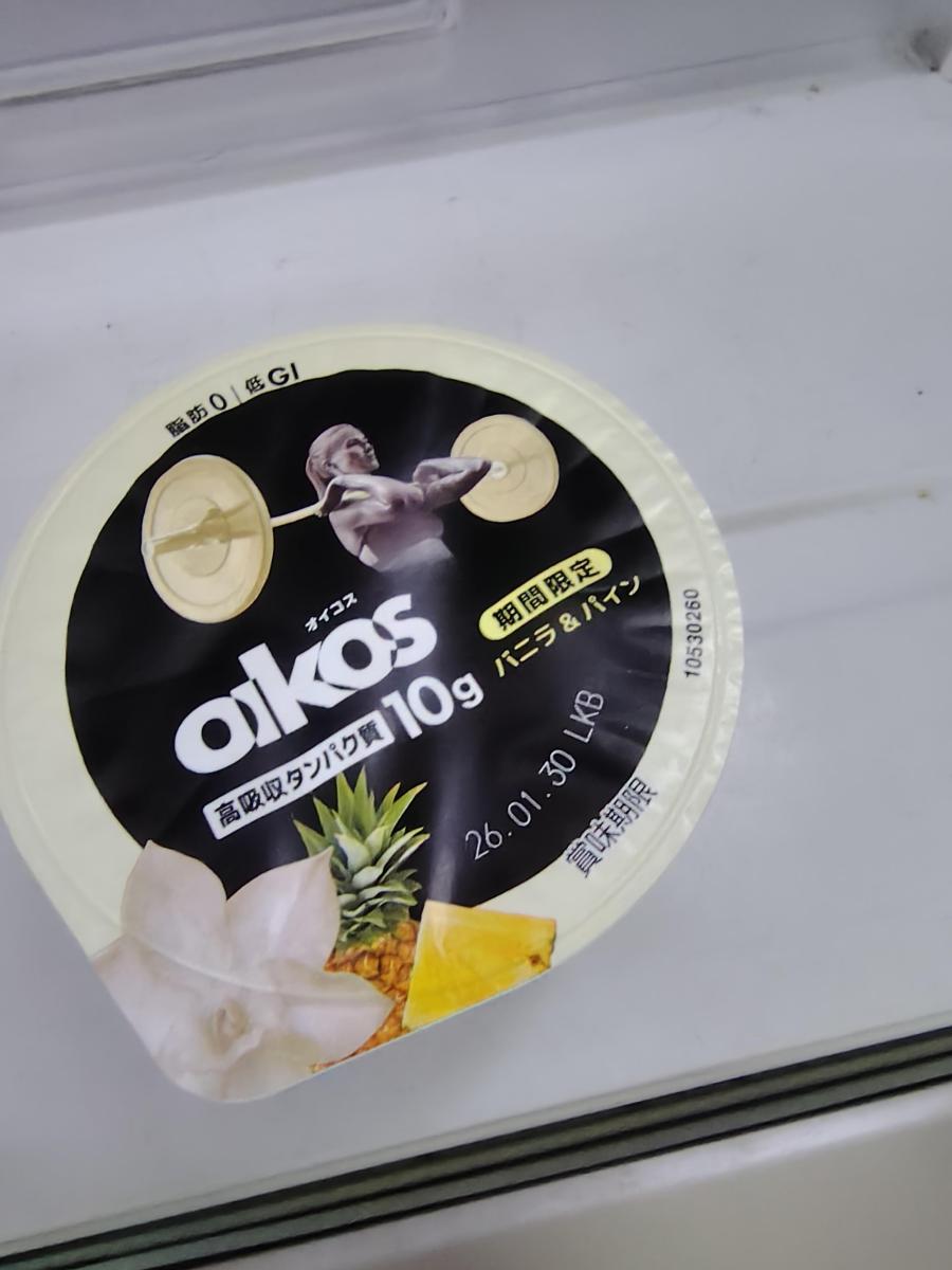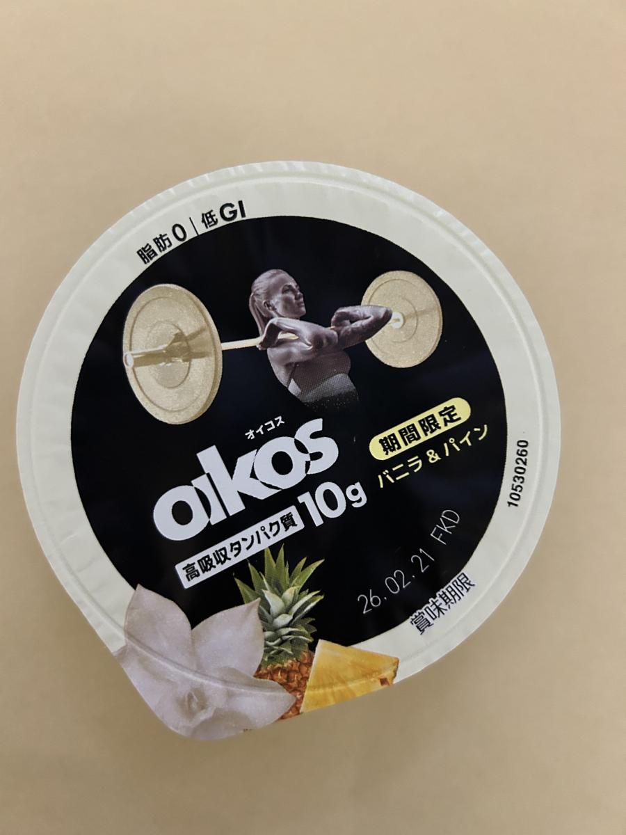 高吸収タンパク質配合の脂肪ゼロ、低GIプロテインヨーグルトです。オイコスヨーグルトはどれも美味しいですが、こちらの期間限定「バニラ&パイン」もとても美味です。