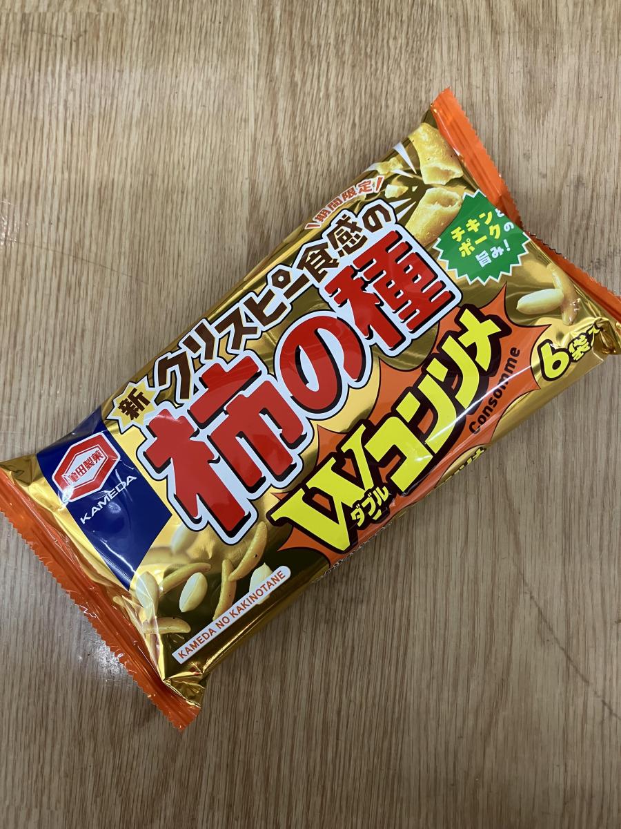 柿の種にコンソメの旨味が利いたパウダーがまぶしてあり濃厚な味わいになってました。チキンとポークのコンソメ風味の後にうるち米の柿の種の香りがするといった美味しさでした。軽めな食感と相まって食べ出したら止まらなくなります。