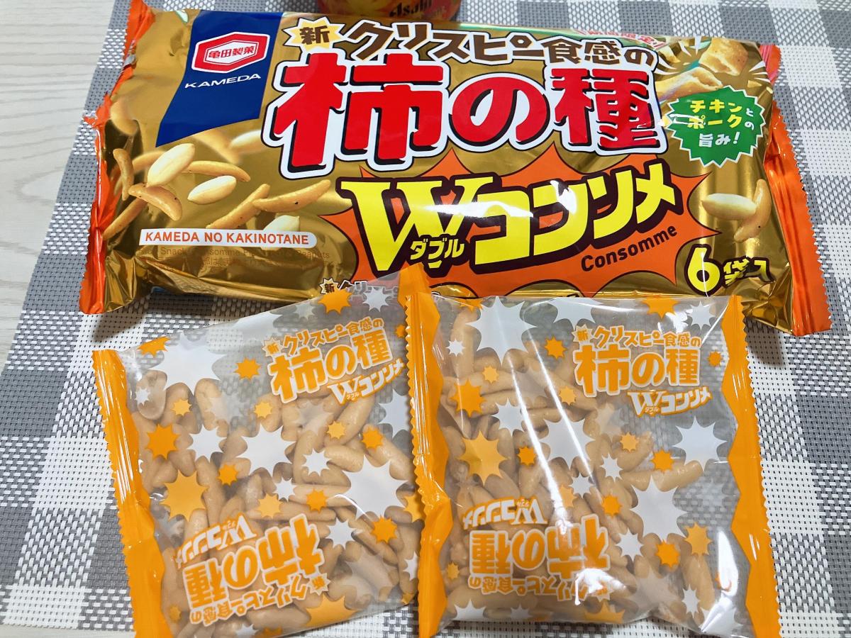 コンソメ味の米菓は珍しいかもと思い購入してみました。チキンとポークの旨味が感じられてクリスピーの軽い食感と合っていました。小袋サイズで少しおつまみが欲しい時に丁度良いです。