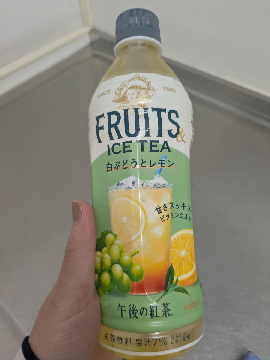 フルーツ&アイスティーなので、フルーツの味がするのはわかる。けど、紅茶の味が感じられないのはちょっと不満。ジュースだったら納得したと思う。もっと紅茶の味を求めてた。でも味は美味しい。白葡萄の爽やかさと、あまり酸っぱくないレモンのバランス、いいと思います。
